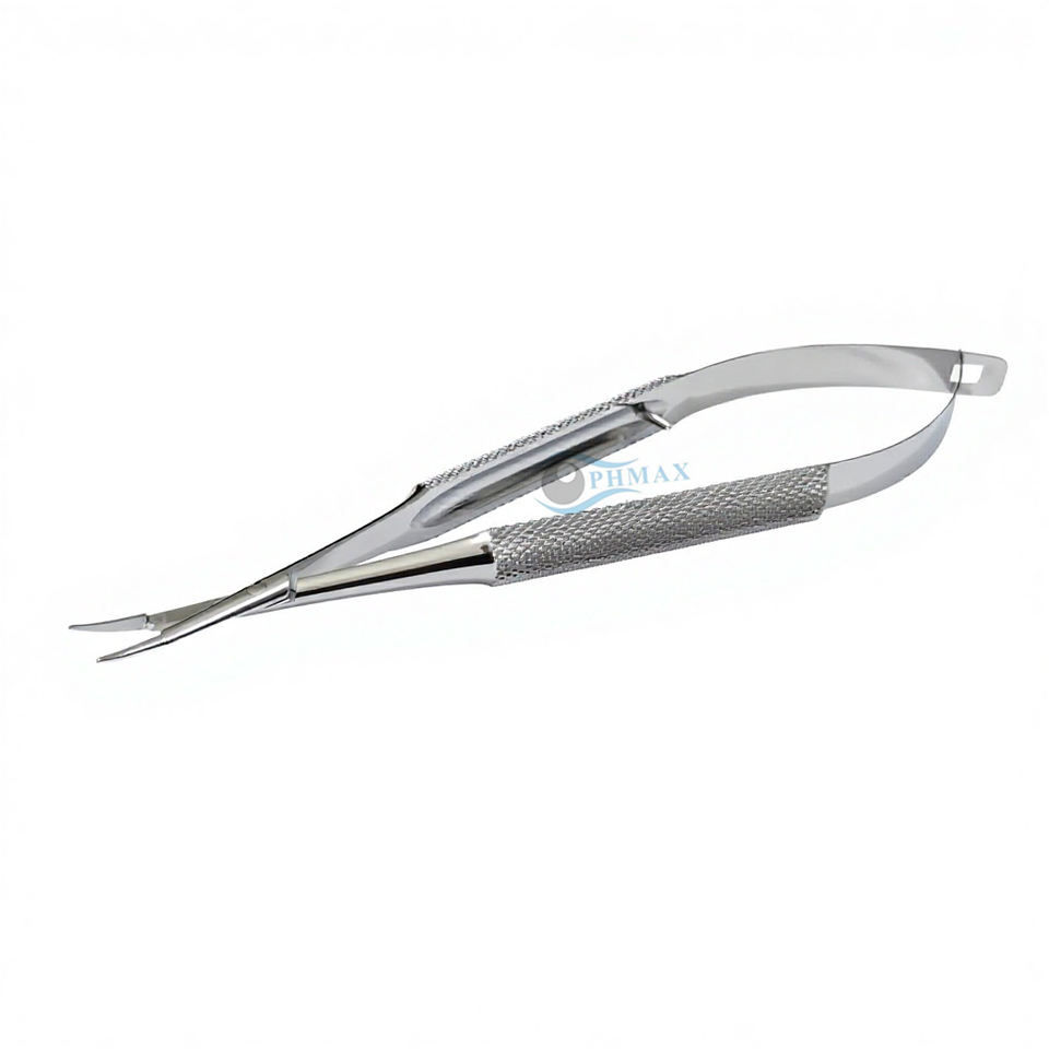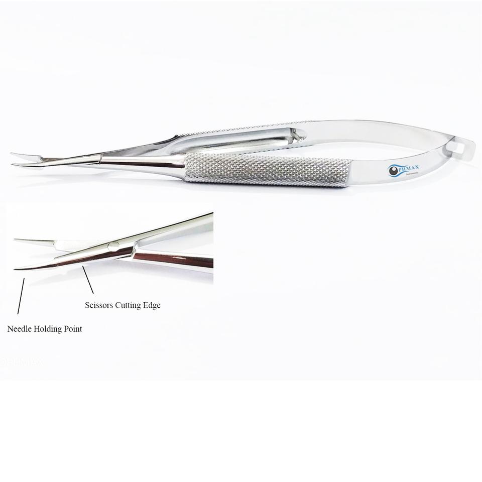 ที่จับเข็มไมโคร/กรรไกรอายเรส ปากโค้ง ด้ามกลม 5.5 นิ้ว (14 ซม.) เครื่องมือผ่าตัดตาทำจากสแตนเลส