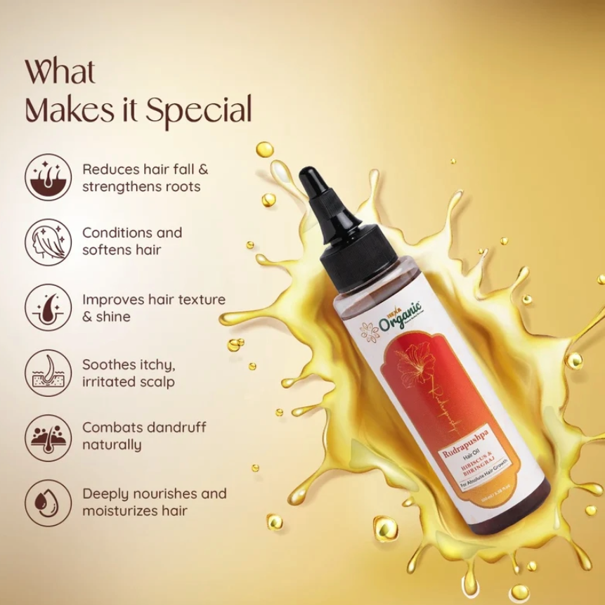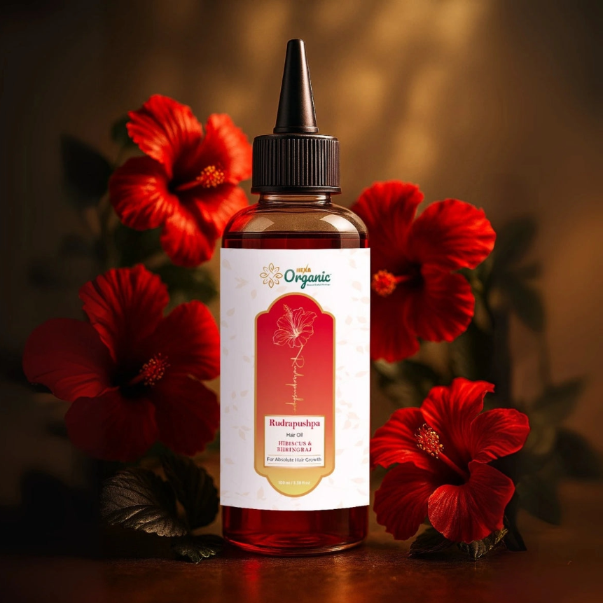 น้ำมันบำรุงผมอายุรเวท 100 มล. ผสมดอกชบาและบริงราจ พร้อมดีไซน์เฉพาะ