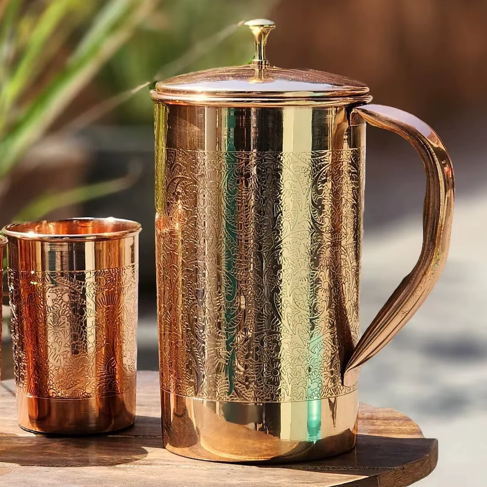 เหยือกน้ำทองแดงอายุรเวท น้ำทองแดงเพื่อสุขภาพ ชุดเหยือกทองแดงอายุรเวท เหยือกน้ำดื่มทองแดง ทองแดงเพื่อสุขภาพ