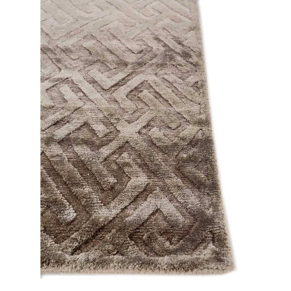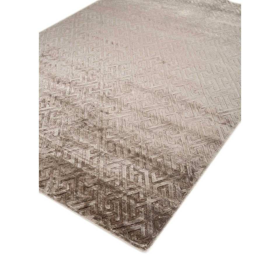 พรมไหมไผ่ถักมือสีเบจและสีน้ำตาลลายเรขาคณิตรูปสี่เหลี่ยมผืนผ้าสำหรับห้องนั่งเล่น หนา 10 มม. รุ่น AIBS-3039