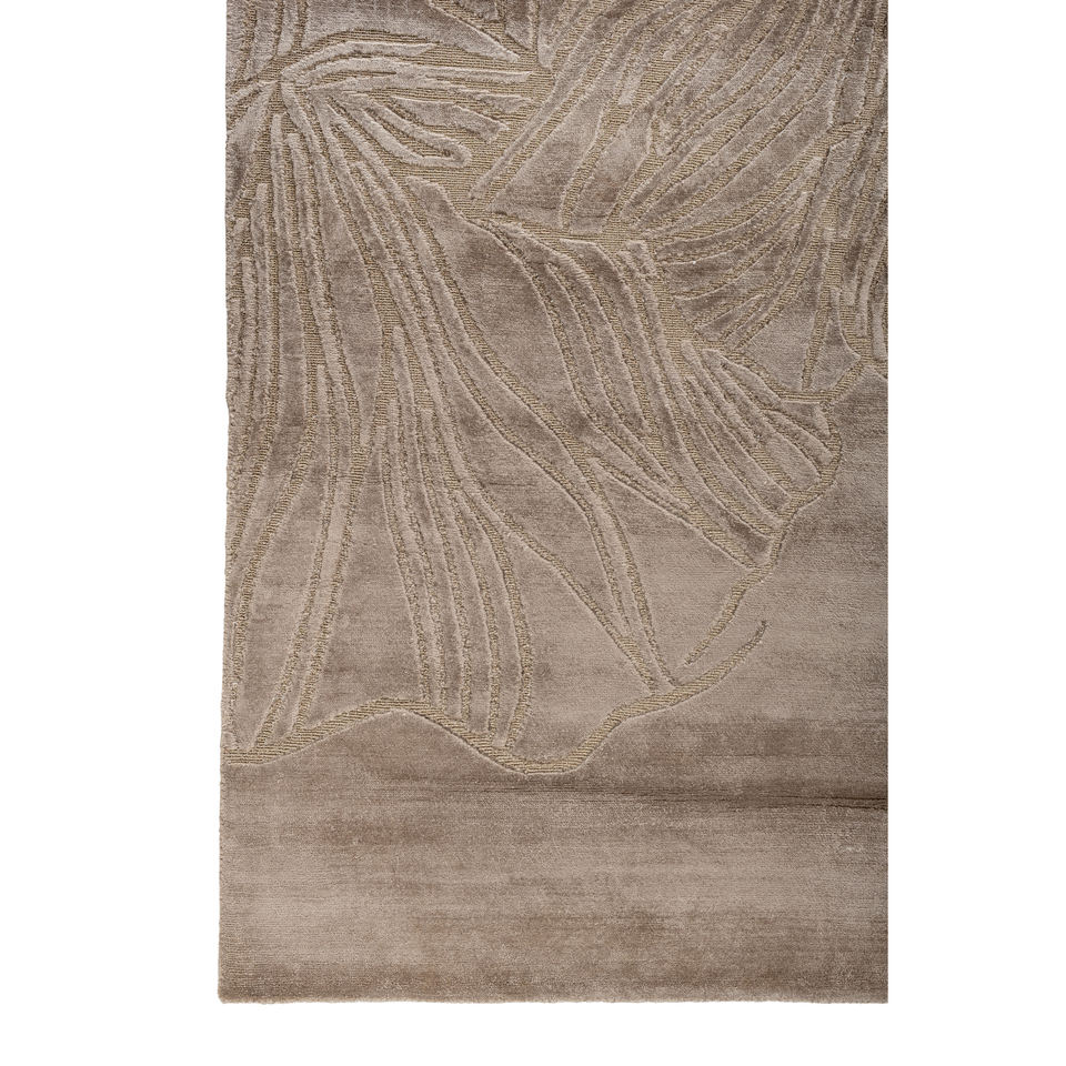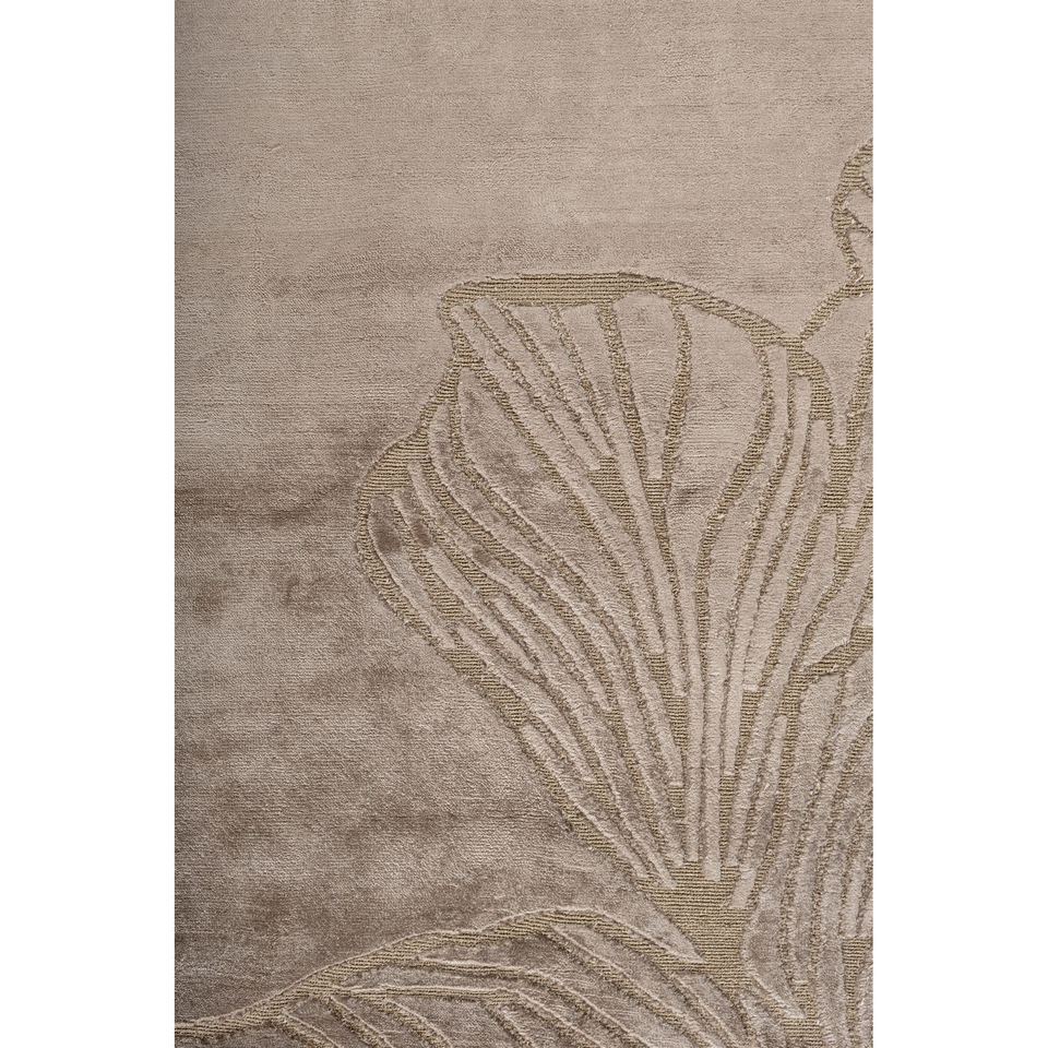 พรมไหมไผ่ถักมือสีเบจและสีน้ำตาลลายดอกไม้รูปทรงสี่เหลี่ยมผืนผ้าสำหรับห้องนั่งเล่น ห้องโถง รุ่น Aibz-1044
