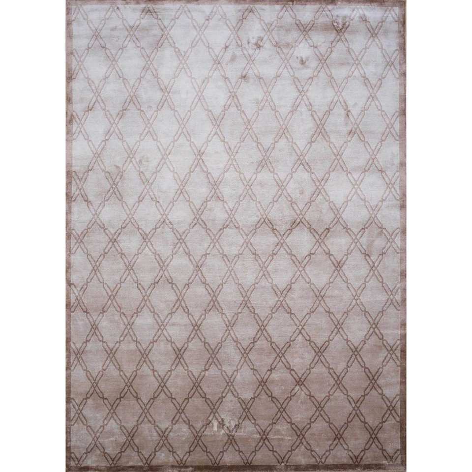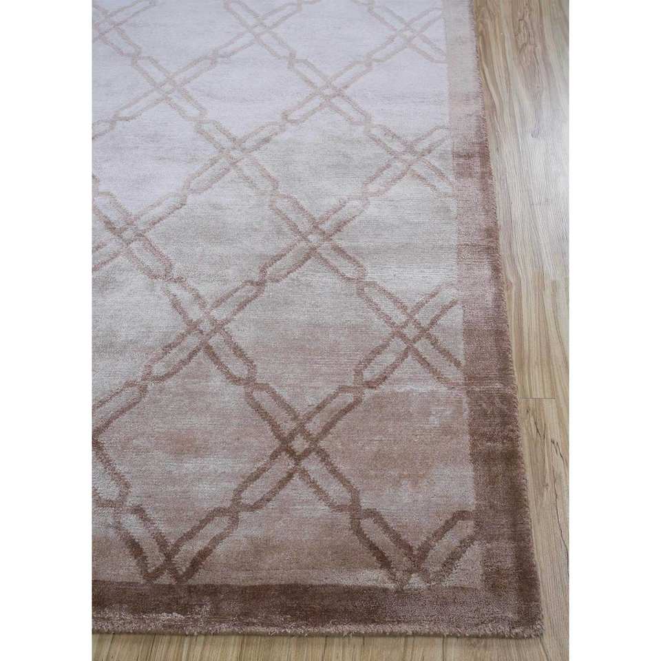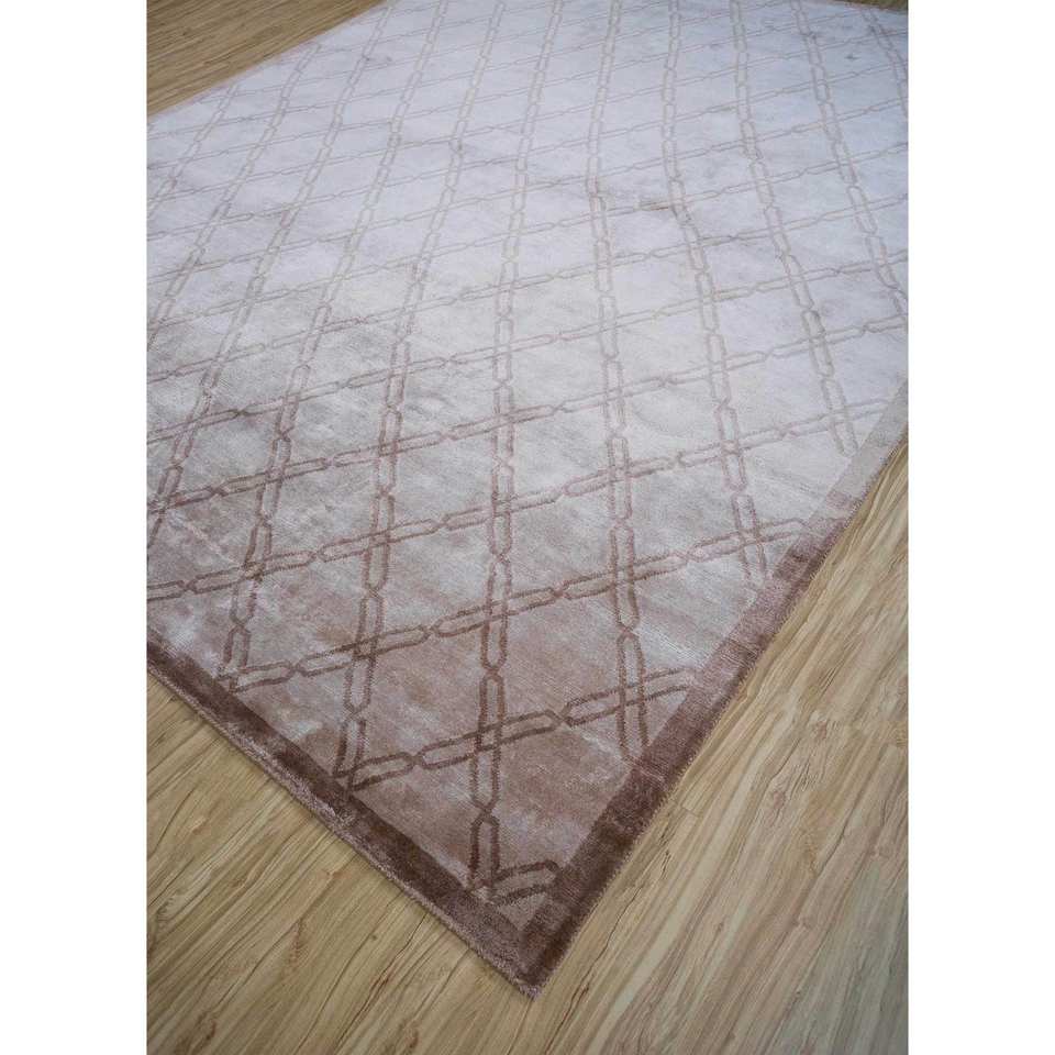 พรมไหมไผ่ถักมือสีเบจและสีน้ำตาลลายดอกอาซาเลีย หนา 10 มม. รูปทรงสี่เหลี่ยมผืนผ้า ลายจิ๊กซอว์ สำหรับห้องนั่งเล่นในบ้าน รุ่น Aibs-3002