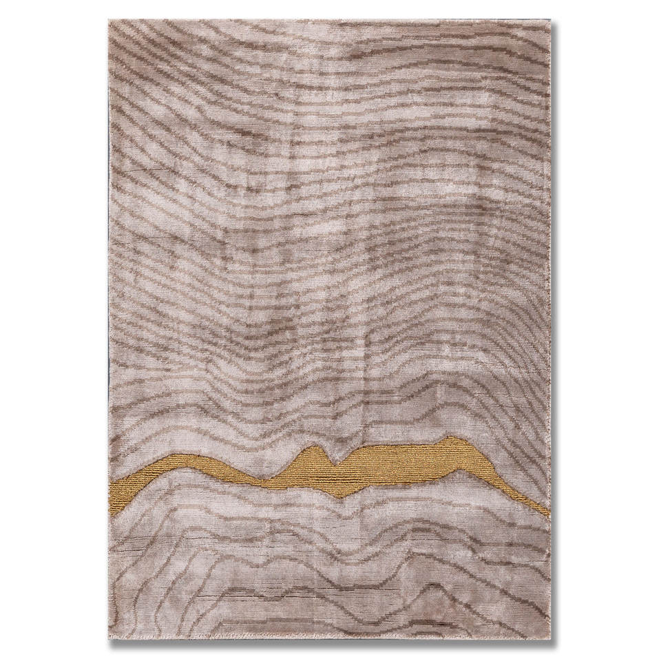 พรมไหมไผ่ถักมือสีเบจน้ำตาลลายดอกอาซาเลีย ขนาดใหญ่ 9x12 ฟุต สำหรับห้องนั่งเล่น ลายแบบนามธรรม ใช้ในบ้านหรือทางเดินในบ้าน-AIBZ-1003