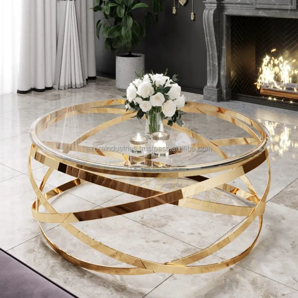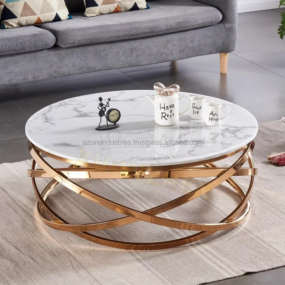 Azora Industries โต๊ะกาแฟหินอ่อนสไตล์โมเดิร์นหรูหราสไตล์นอร์ดิกโต๊ะกลางทำจากโลหะกุหลาบดีไซน์แบบดั้งเดิมสำหรับโรงแรมตรงจากโรงงาน