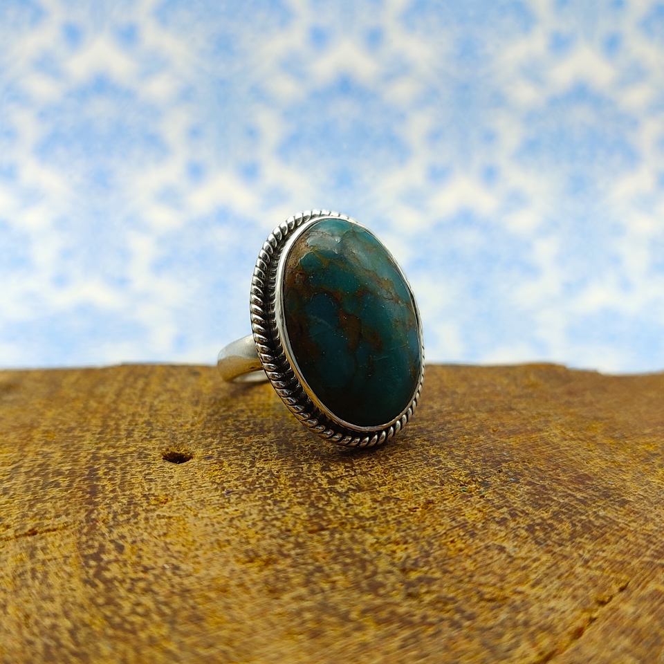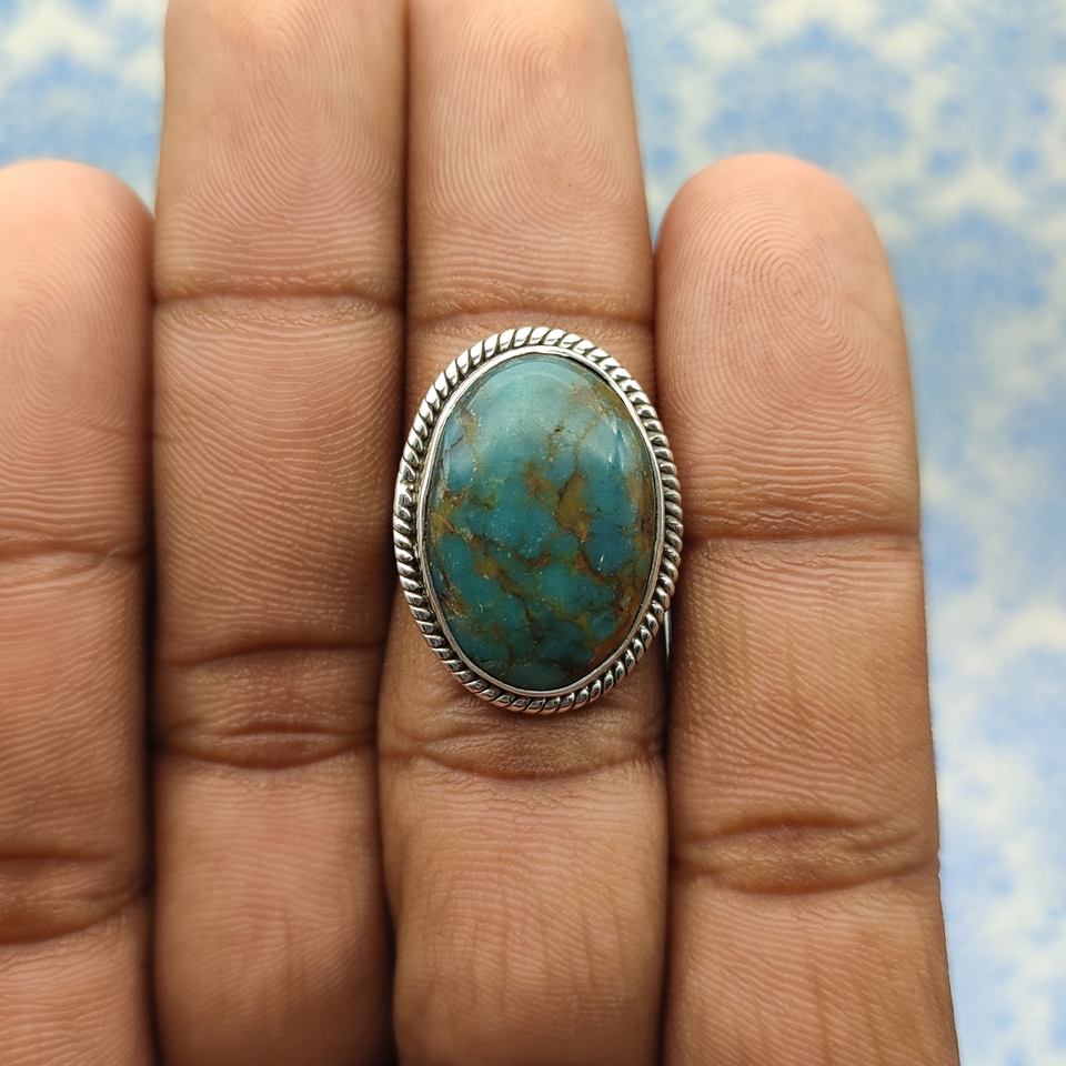 แหวนเงิน925พลอย azorite สำหรับผู้หญิงทำด้วยมือเงินฮิปปี้แหวนพลอย925ธรรมชาติ Azorite วินเทจ