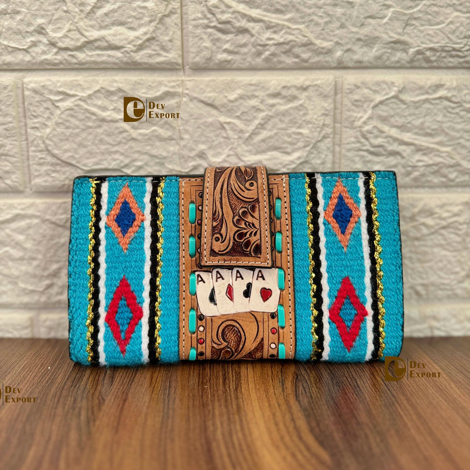 กระเป๋าคลัทช์ทรงแบนอานแอซเท็กทรงกระเป๋าคลัทช์ดีไซน์ใหม่มีสไตล์กระเป๋าสตางค์หนังสไตล์ตะวันตกที่ไม่เหมือนใครสำหรับผู้หญิง