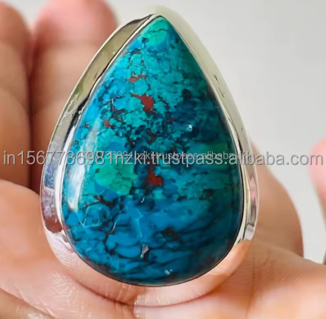แหวนคริสโซโคลลา Azurite แหวนเงินสเตอร์ลิง925แหวน Boho ทำด้วยมือเครื่องประดับสำหรับผู้หญิงเครื่องประดับคริสโซโคลลาอัญมณี Azurite