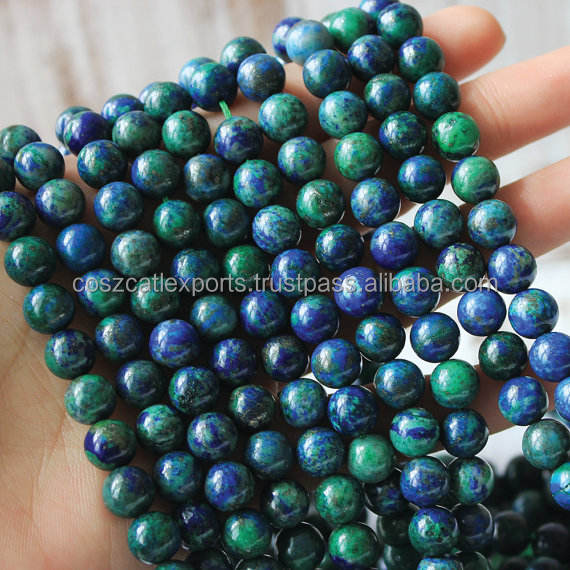 Azurite ลูกปัดหินอัญมณีทรงกลมสีเขียว,ลูกบอลพลอยสีฟ้าประกาย