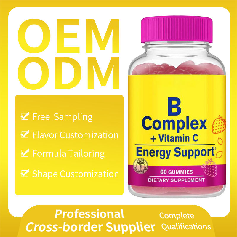 B-Complex with Vitamin C Gummies by Daily Dietary Supplement for Adults and Kids B6 B12 Vitamin C Strawberry Flavor Chewables