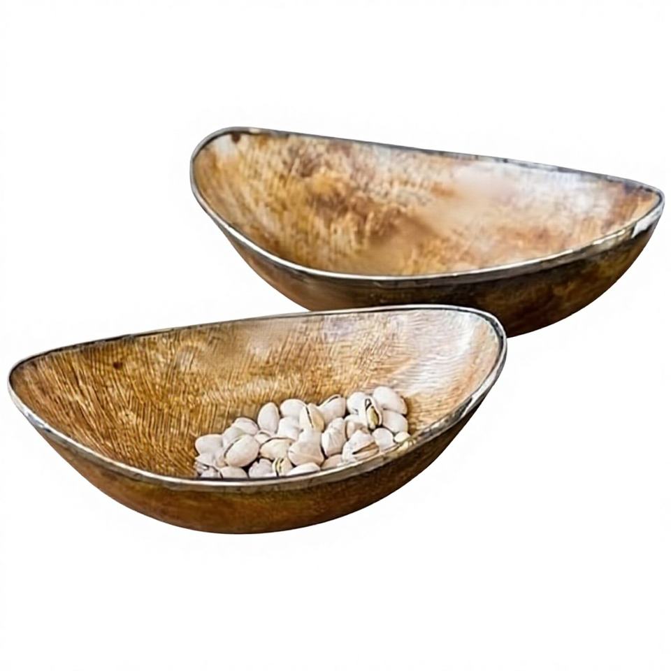 B.S ถาดเสิร์ฟอาหารแตรธรรมชาติแบบพกพาทำมือ BSO-9นานาชาติเครื่องล้างจานปลอดภัยไมโครเวฟขัดเงา