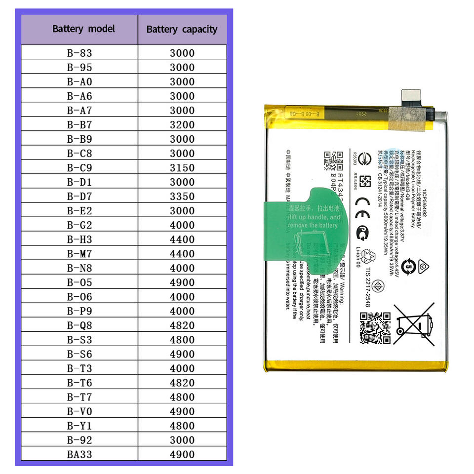 B-S6ชาร์จได้สมาร์ทโฟนแบตเตอรี่ดิจิตอล4900มิลลิแอมป์ชั่วโมงสำหรับ VIVO iqoo Z5 5กรัม/T1แบตเตอรี่โทรศัพท์5กรัม