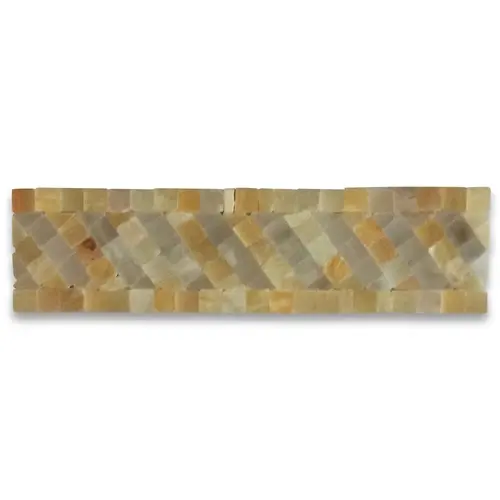 กระเบื้องโมเสคขอบลิสเตอร์ลายหินอ่อนน้ำผึ้งยุคฟื้นฟูศิลปวิทยา B0091P ขนาด2x7.7