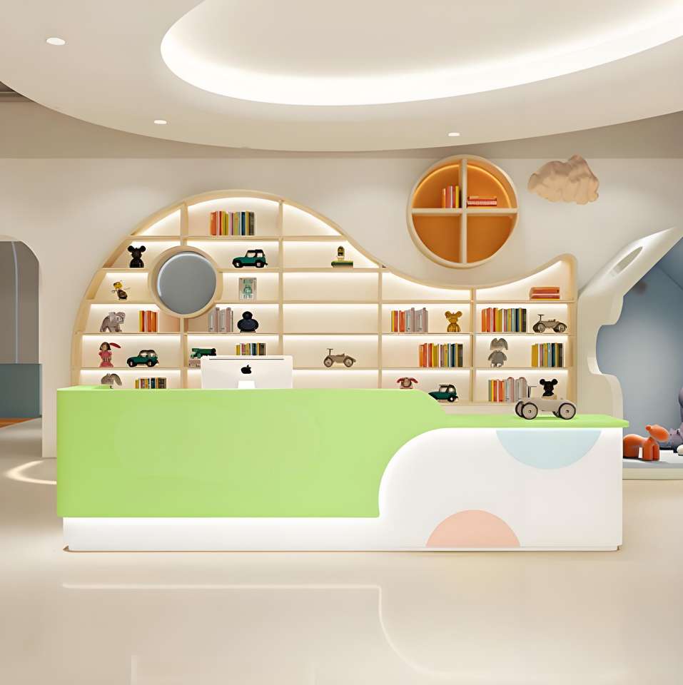 โต๊ะประชาสัมพันธ์ไม้จริงเรียบง่ายทันสมัยหรูหรา รุ่น B012 สำหรับโรงพยาบาล ซูเปอร์มาร์เก็ต โรงแรม สถาบันฝึกอบรม - ทนทานต่อการกัดกร่อน เหมาะสำหรับรับเงินสด