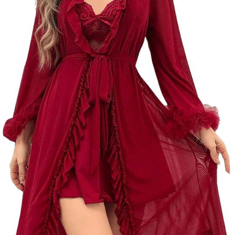 ชุดนอนซีทรูลูกไม้เซ็กซี่แบบใหม่ รุ่น B043 ชุดเดรสสายรัดเย้ายวนสำหรับเดท ชุดคลุมสำหรับเจ้าสาว แต่งขอบลูกไม้แบบโปร่ง
