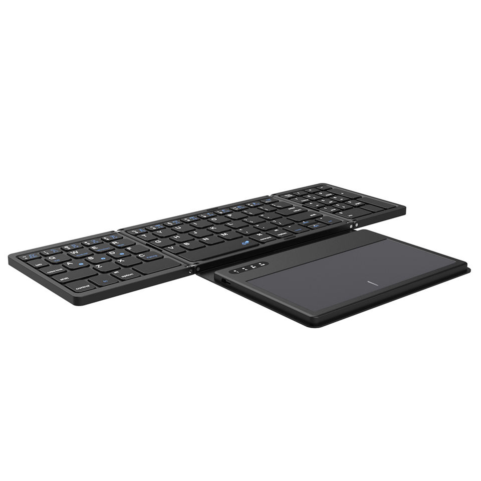 คีย์บอร์ดไร้สายพับได้ B055 หนังแท้ พร้อมทัชแพด ดีไซน์พกพาสะดวกสำหรับแล็ปท็อป/โทรศัพท์/แท็บเล็ต ชาร์จซ้ำได้ สีดำ