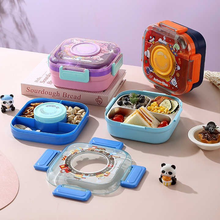 เบนโตะกล่องข้าวกลางวันเป็นรูปกล้อง B172พร้อมช่องใส่ซอสกล่องใส่อาหารกลางวันทรงสี่เหลี่ยมกันรั่วสำหรับเด็ก3ช่อง