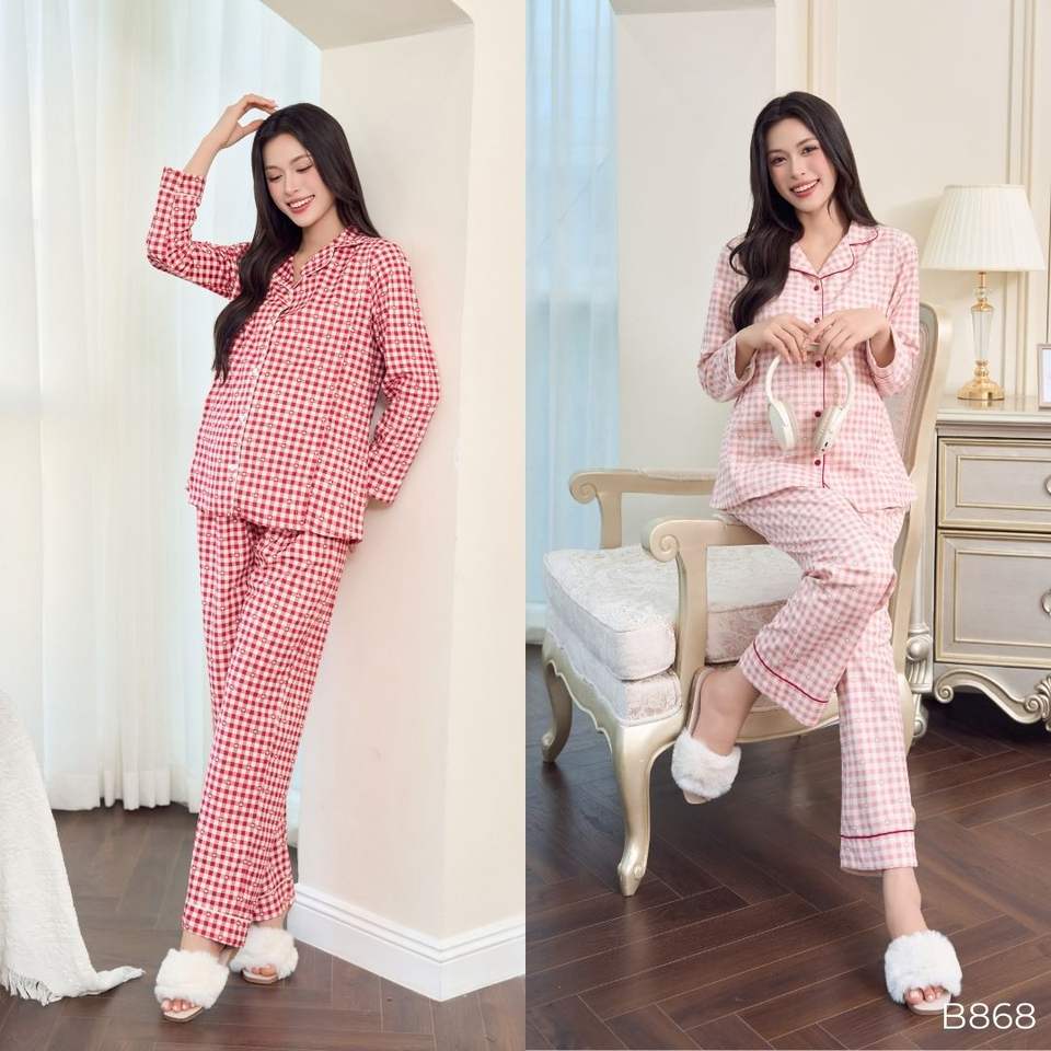 ชุดนอนผ้าไหมทัสซาร์ลายหัวใจ B2 MUM B868 สำหรับคุณแม่ตั้งครรภ์ ผ้ายืดสแปนเด็กซ์/โพลีเอสเตอร์ ปิดหน้าอกแบบซ่อน