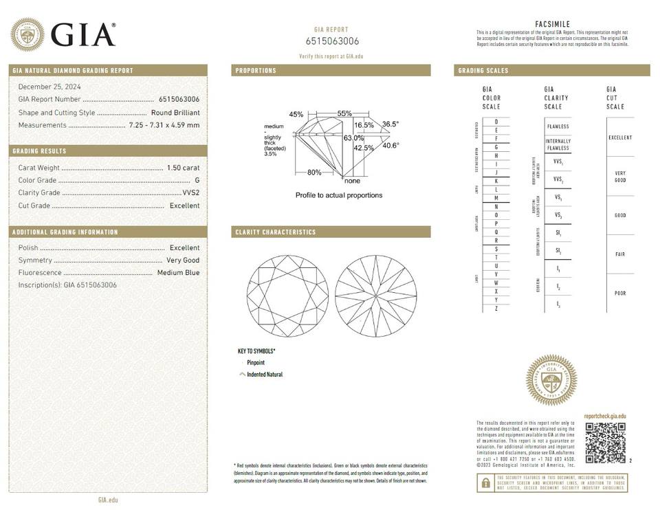 B2B d'vins เพชรพลอย Gia ได้รับการรับรอง1.50 CT เพชรสีขาวหลวมตามธรรมชาติกลม G ไหลบริสุทธิ์บริสุทธิ์