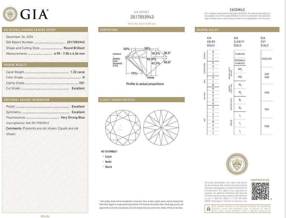 B2B d'vins Jewels ได้รับการรับรอง Gia 1.32 CT หลวมสีขาวกลม H ไหล FL เพชรบริสุทธิ์บริสุทธิ์บริสุทธิ์บริสุทธิ์เจียระไนแบบอดีต