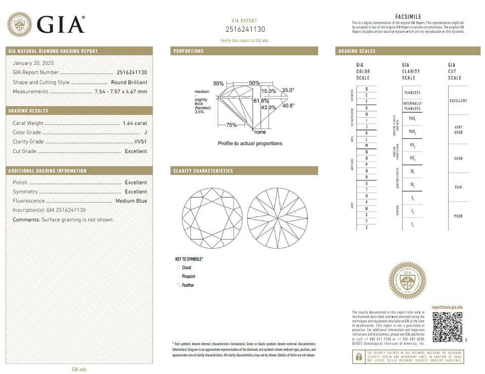 เพชร B2B บริสุทธิ์สำหรับ Gia ได้รับการรับรอง1.64กะรัตเพชรสีขาวแบบหลวมๆตามธรรมชาติสี J การไหล FL ความบริสุทธิ์ผ่านการตัดอดีตขัดเงา