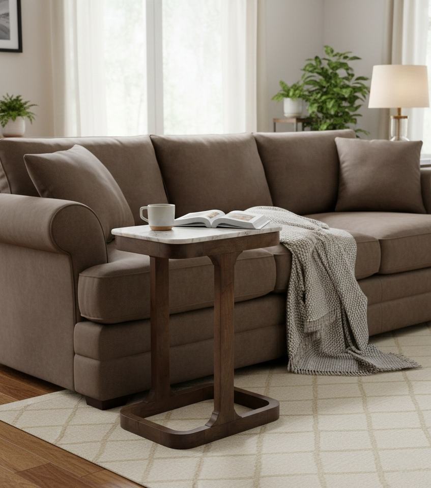 โต๊ะข้างสไตล์นอร์ดิกยุคกลาง B2B ทำจากไม้เนื้อแข็ง พร้อมท็อปหินอ่อน สำหรับชุดโซฟาห้องนั่งเล่น ห้องนอน ร้านอาหาร บาร์ และวิลล่า B2B