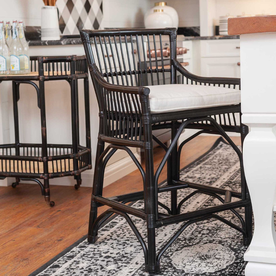 ชื่อสินค้า:เก้าอี้สตูลบาร์พนักพิงหวายบุผ้าสำหรับห้องครัว