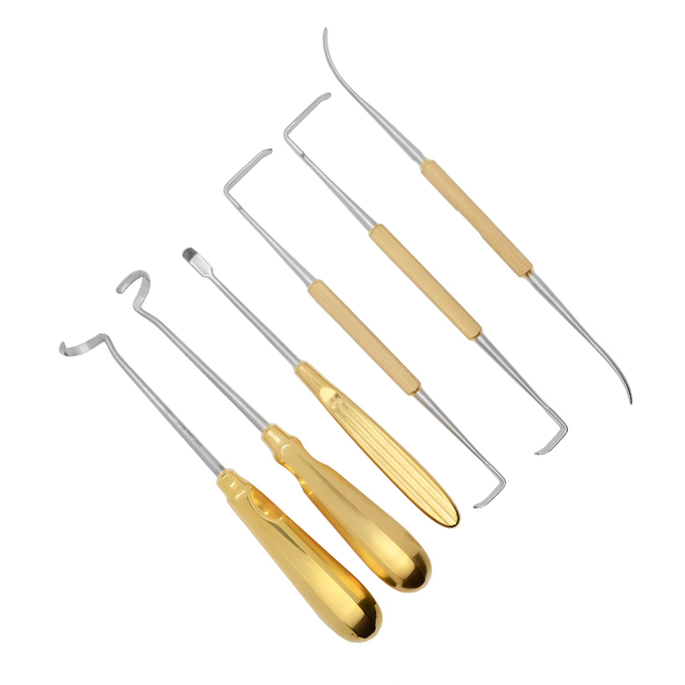 ชุดเครื่องมือผ่าตัดคุณภาพสูงแบบใช้ซ้ำได้ 6 ชิ้น ทำจากทังสเตนคาร์ไบด์ เกรดเยอรมัน ชุบทอง ครึ่ง TC สำหรับการขายส่งแบบ B2B
