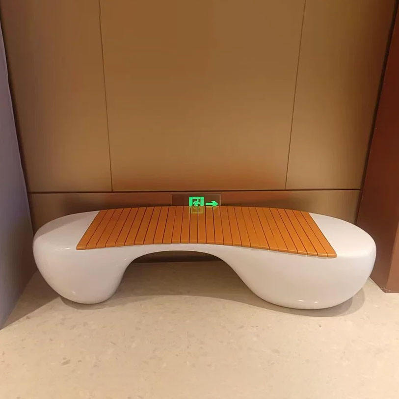 ม้านั่งพักผ่อนกลางแจ้ง B34 รุ่น Midcentury ทำจาก FRP สำหรับห้างสรรพสินค้าและมหาวิทยาลัย พร้อมที่วางต้นไม้ประดิษฐ์ ทนทานและเป็นมิตรกับสิ่งแวดล้อม