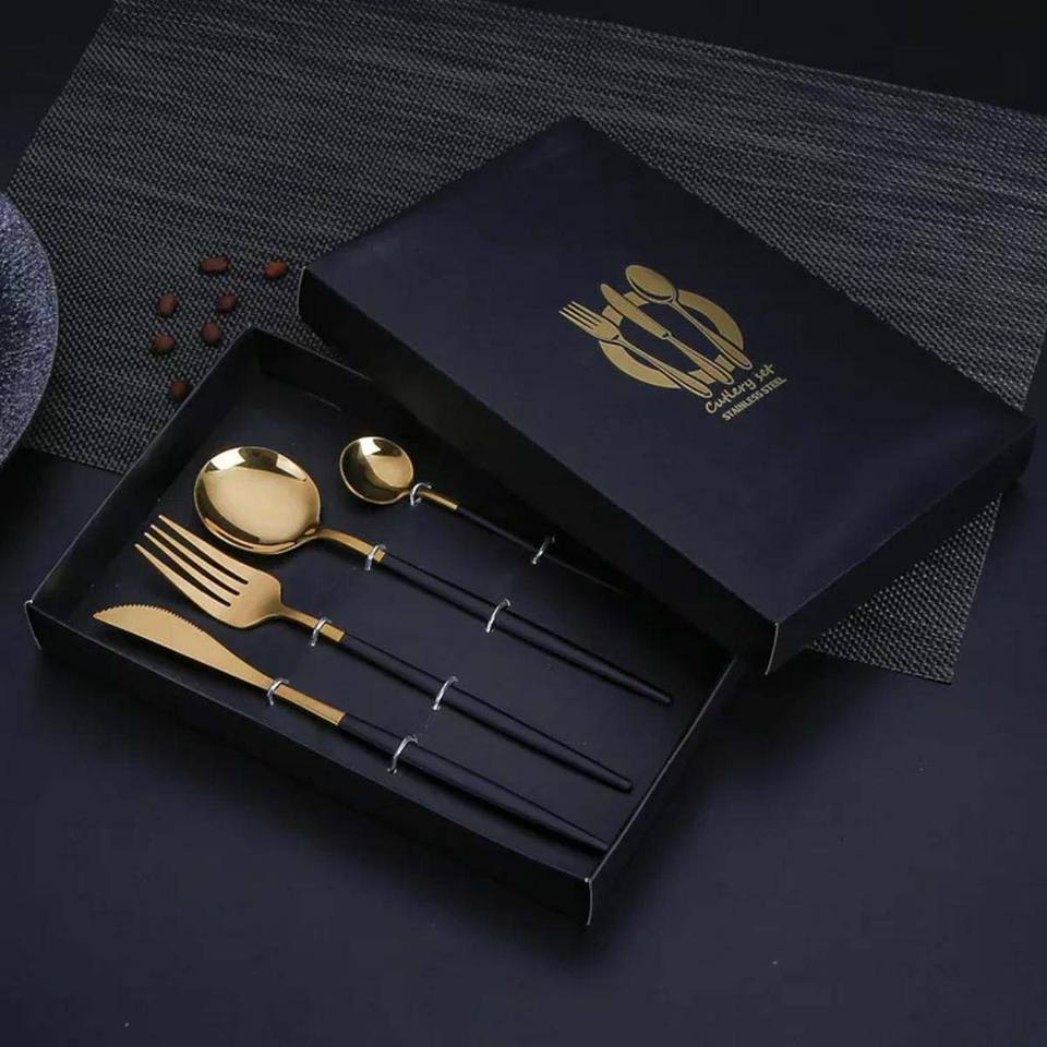 B433คุณภาพสูง bestek มีดโรงแรมช้อนส้อมแจกเงินสีดำอุปกรณ์บนโต๊ะอาหารสแตนเลส430คลาสสิก