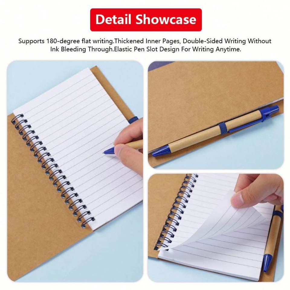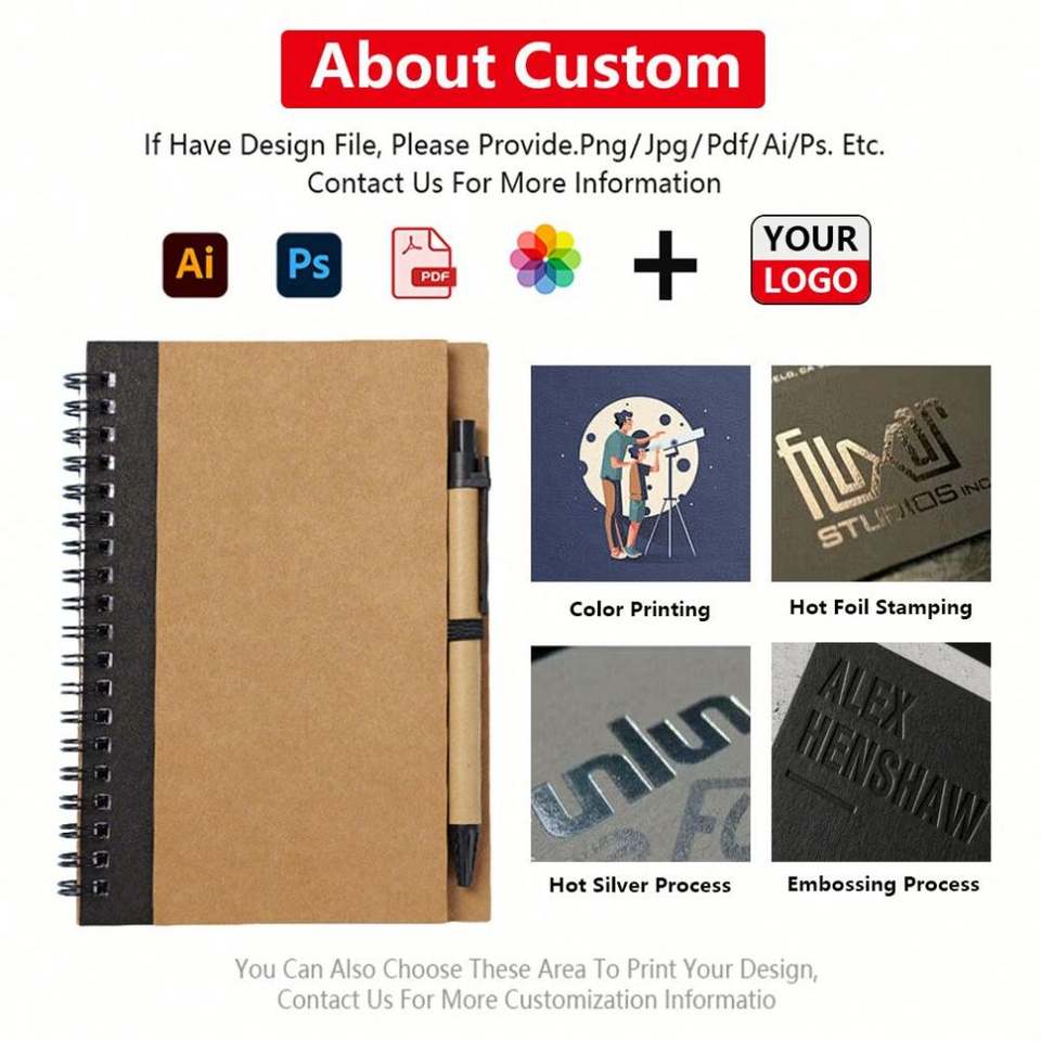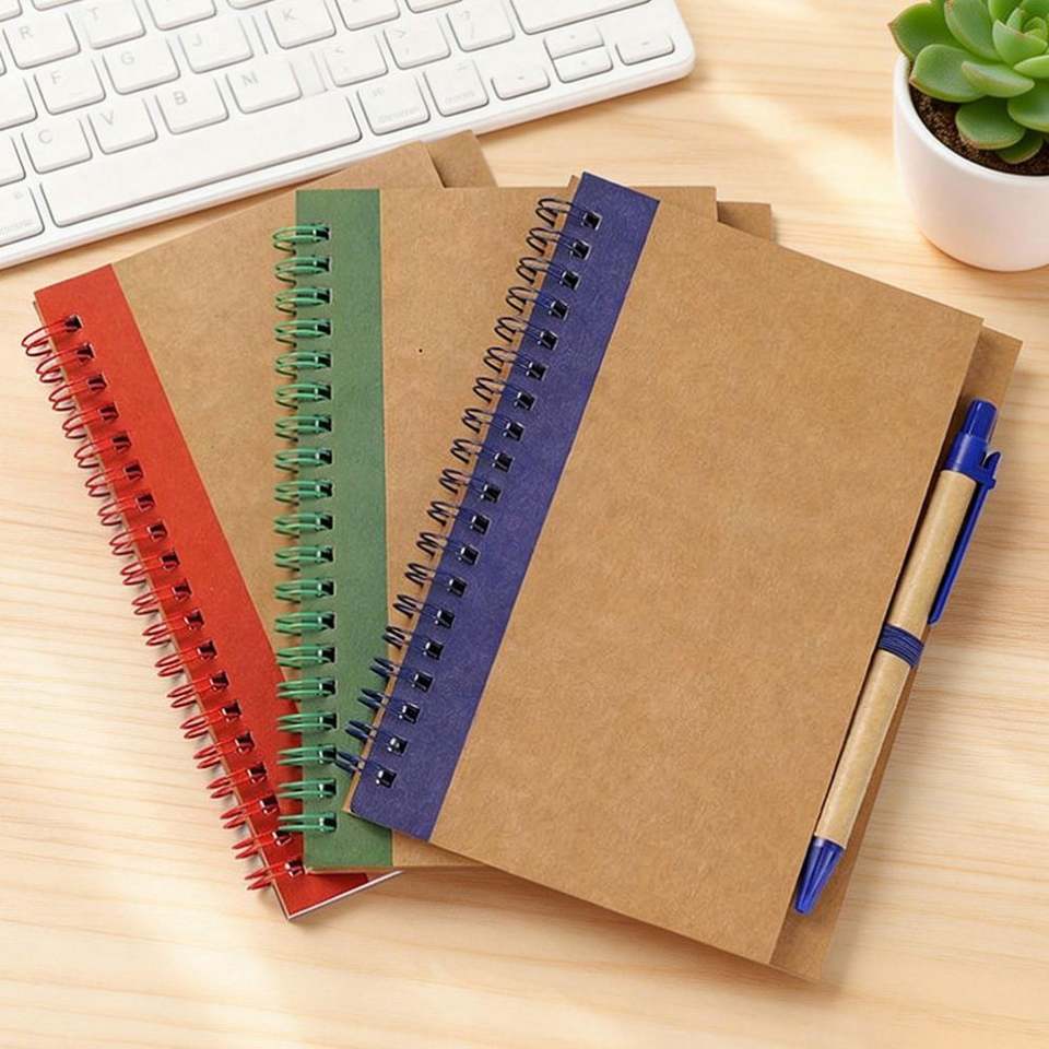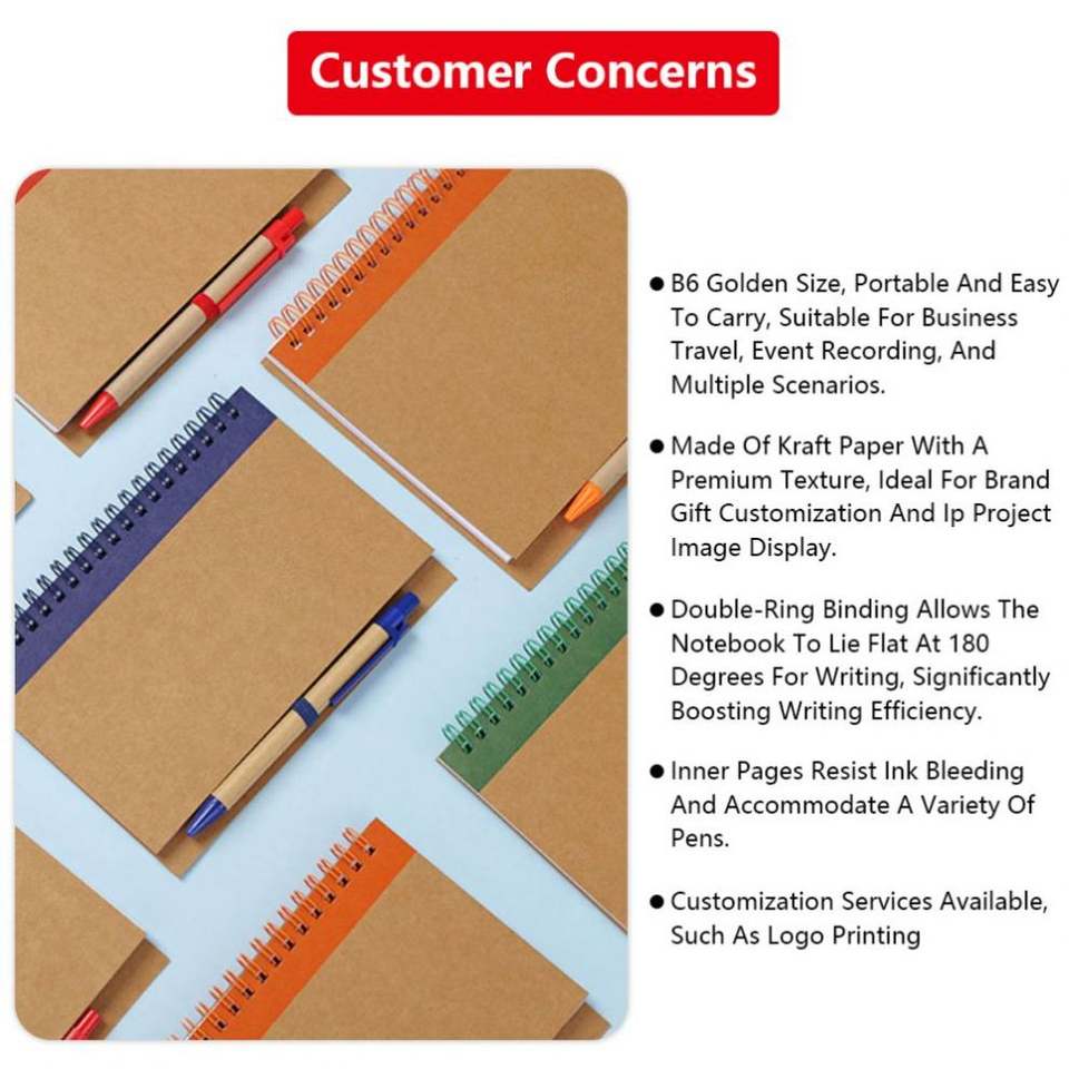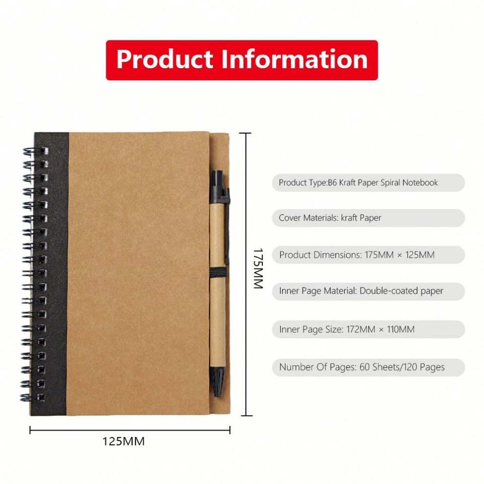 สมุดโน้ตแบบสันห่วง B6/A5 แบบสั่งทำพร้อมปากกา พิมพ์ลาย 60 แผ่น สำหรับนักเรียน สมุดโน้ตกระดาษคราฟท์แบบสันห่วง