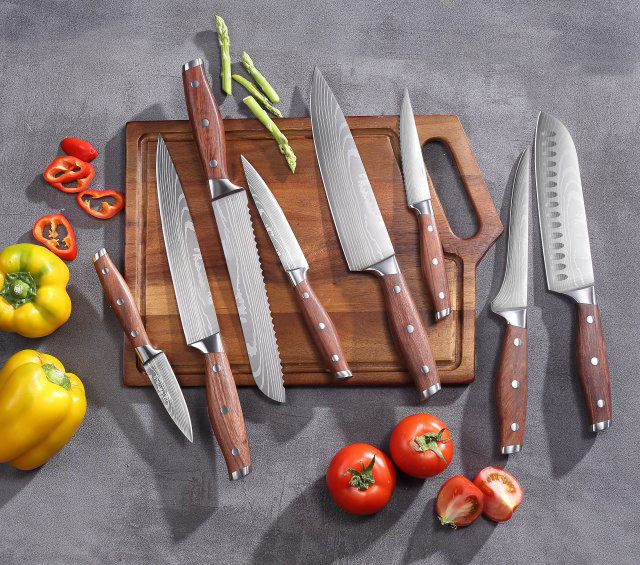 B7คมพิเศษ6นิ้วใบมีดเชฟเหล็กดามัสกัสมือจับไม้โรสวูด
