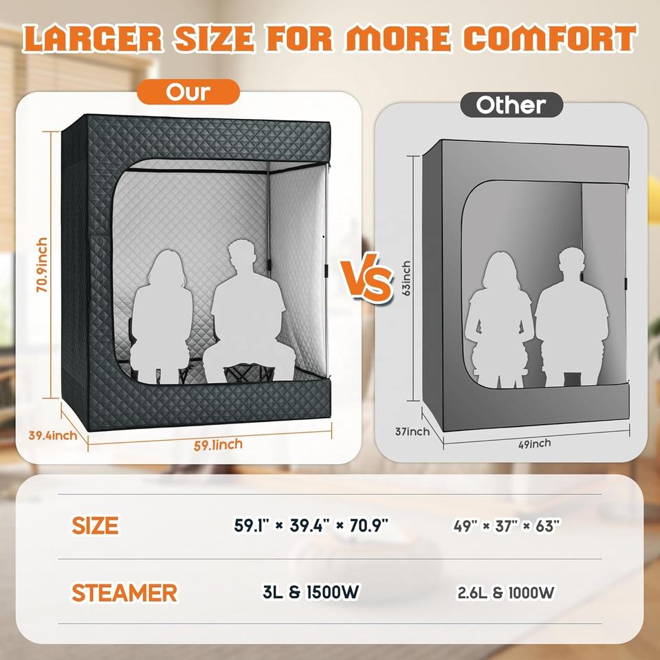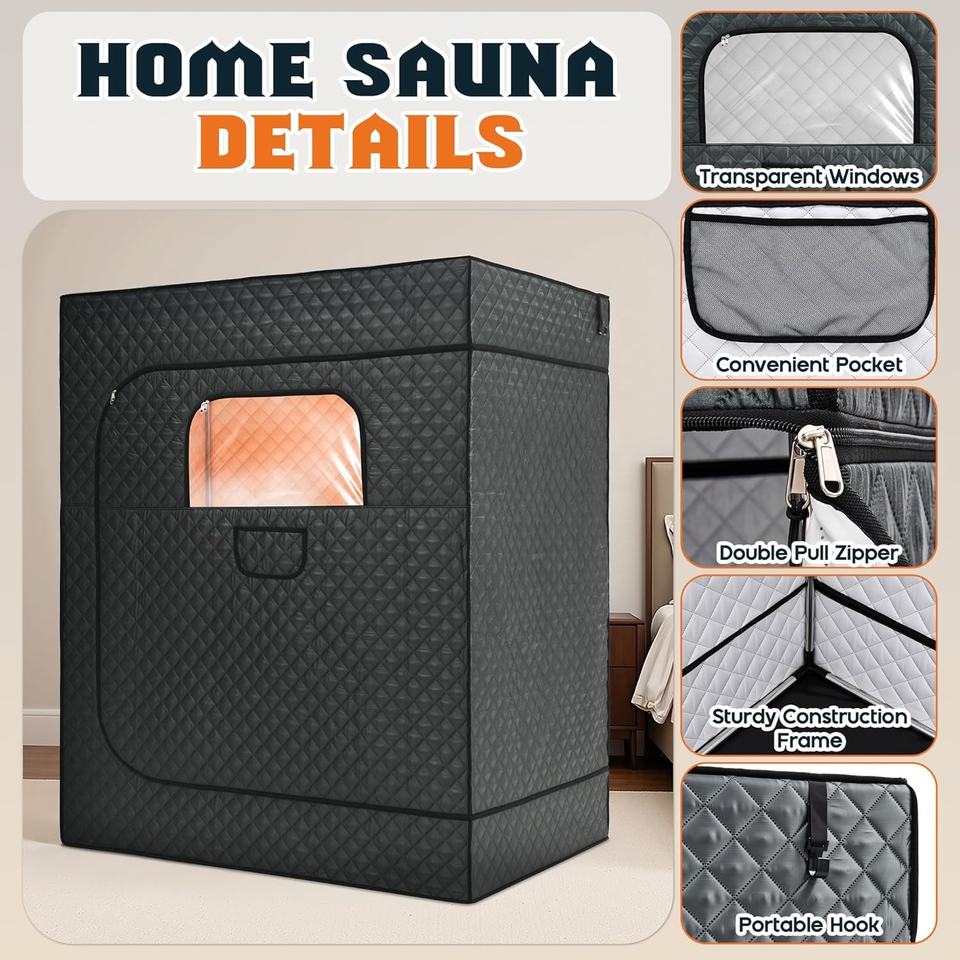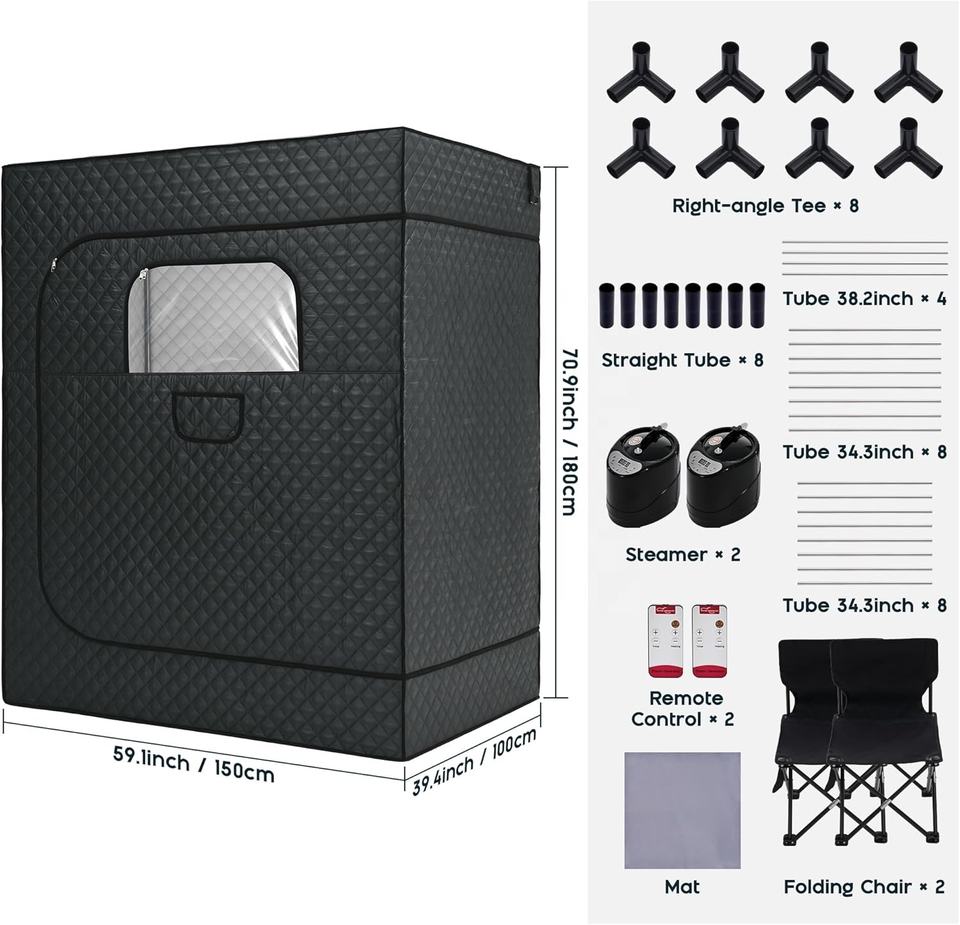 BAFAN Modern Electric Full Body Home Spa Portable Sauna Tent 4.9'x3.3'x5.9' 2-Person Steam Sauna
