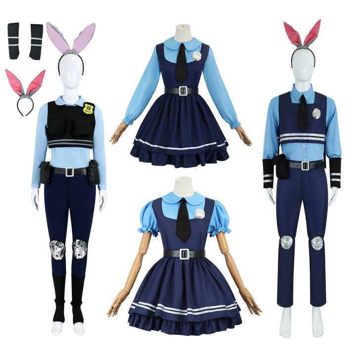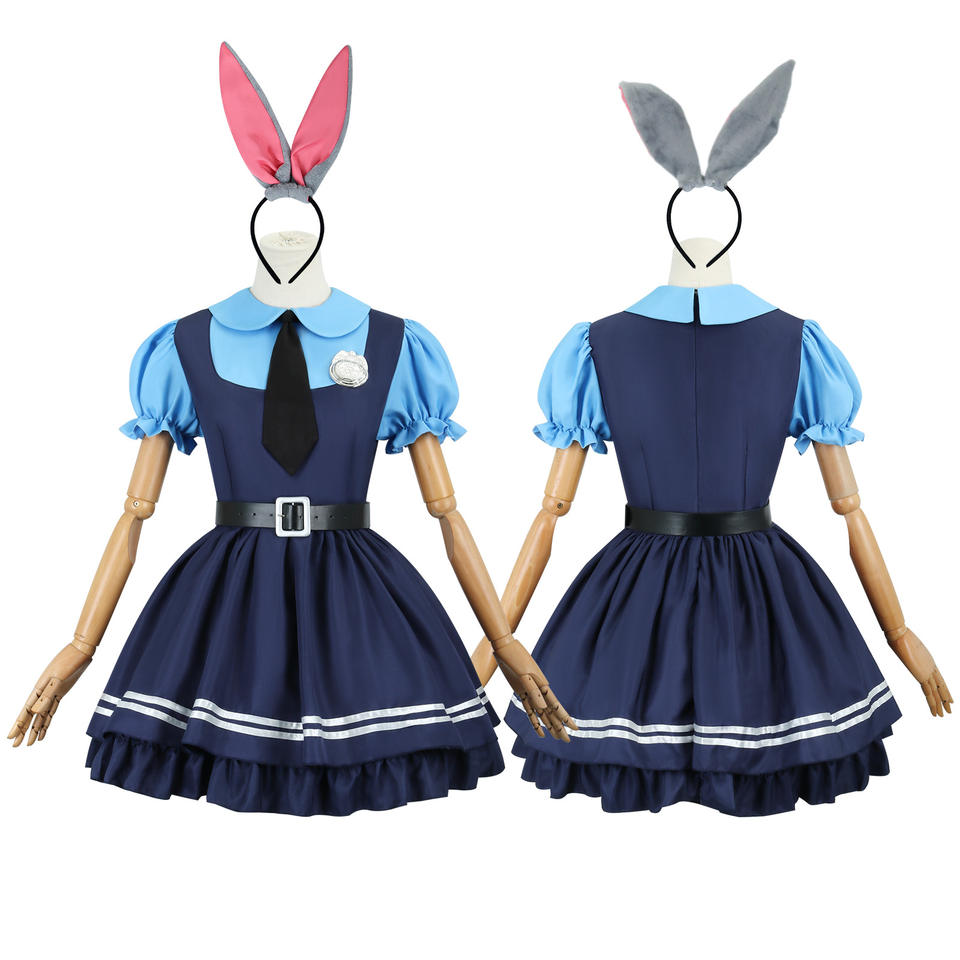 BAIGEชุดคอสเพลย์สําหรับผู้หญิงคอสเพลย์อะนิเมะชุดจูดี้การ์ตูนสไตล์ร่วมชุดคอสเพลย์แม่บ้านกระต่ายผ้า