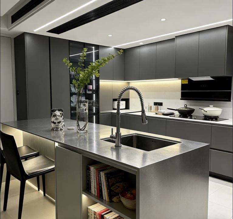 ทำด้วยไม้, เป็นมิตรกับสิ่งแวดล้อม, ทนไฟ, ครัวสมัยใหม่, ตู้ครัวแบบแยกส่วน