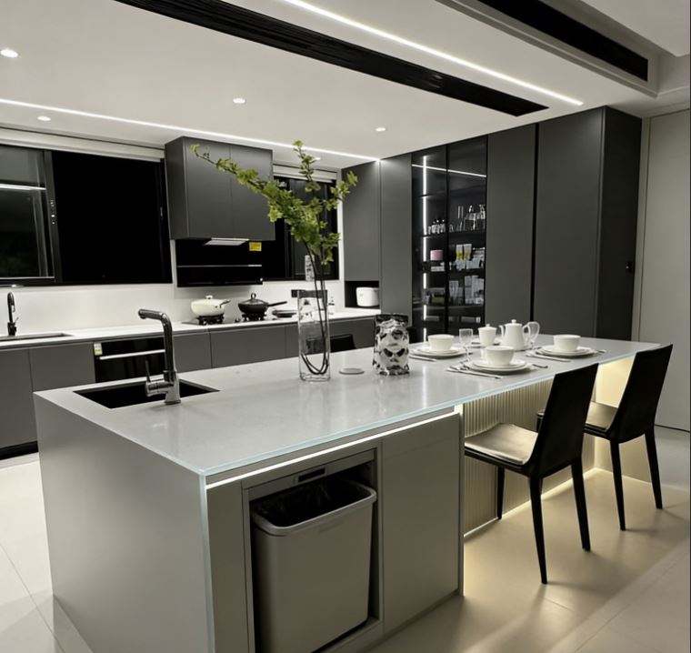ลักษณะ:ทำด้วยไม้, เป็นมิตรกับสิ่งแวดล้อม, ทนไฟ, ครัวสมัยใหม่, ตู้ครัวแบบแยกส่วน