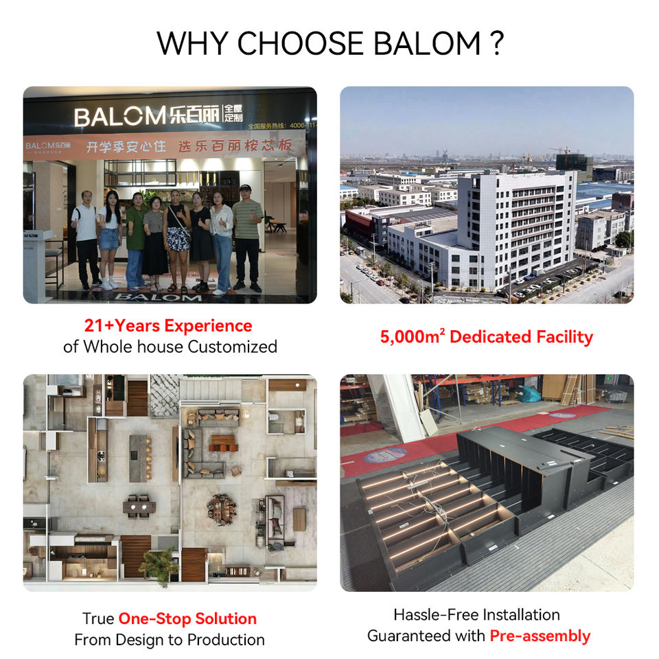 ตู้เสื้อผ้าบิลท์อินแบบโมเดิร์น BALOM ตู้เสื้อผ้าไม้หรูหราแบบเข้ามุม ระบบจัดเก็บของ