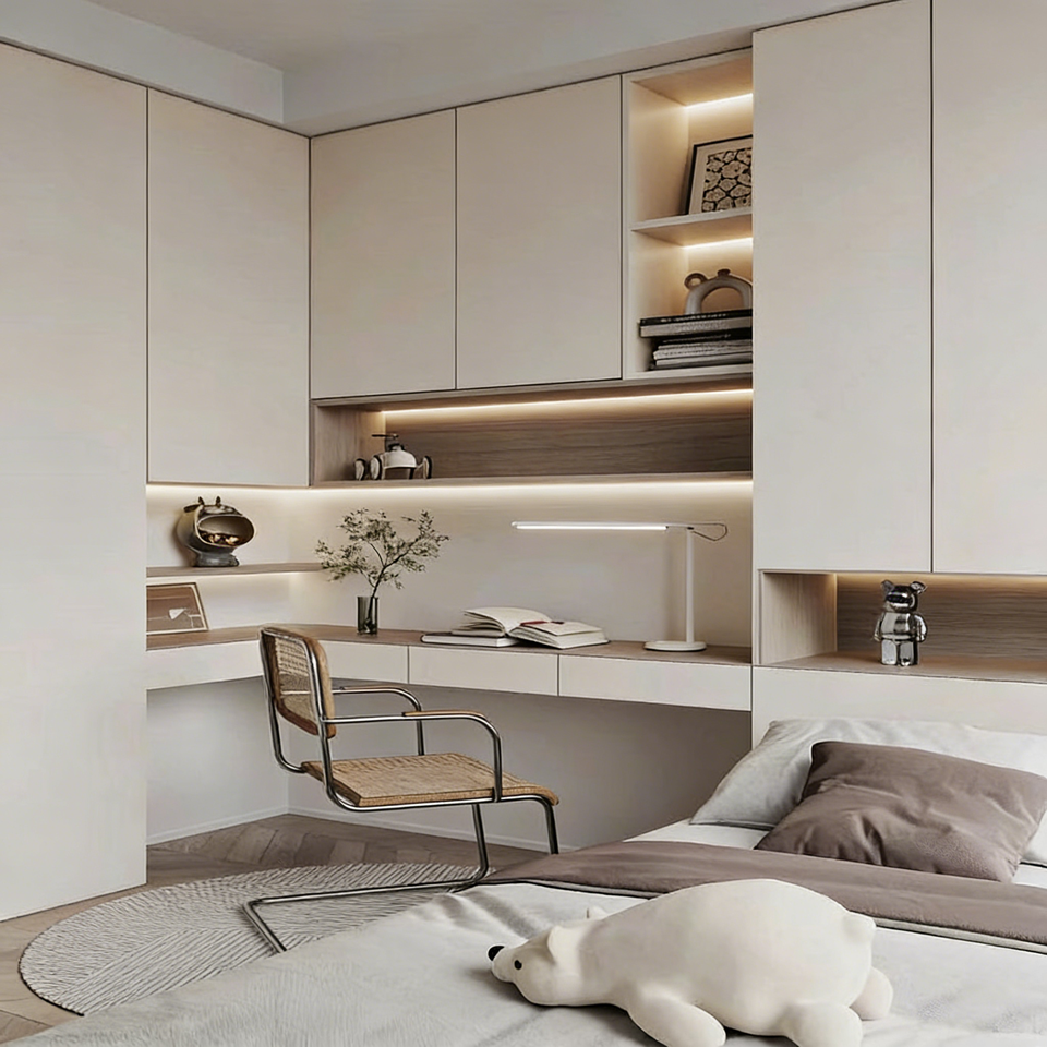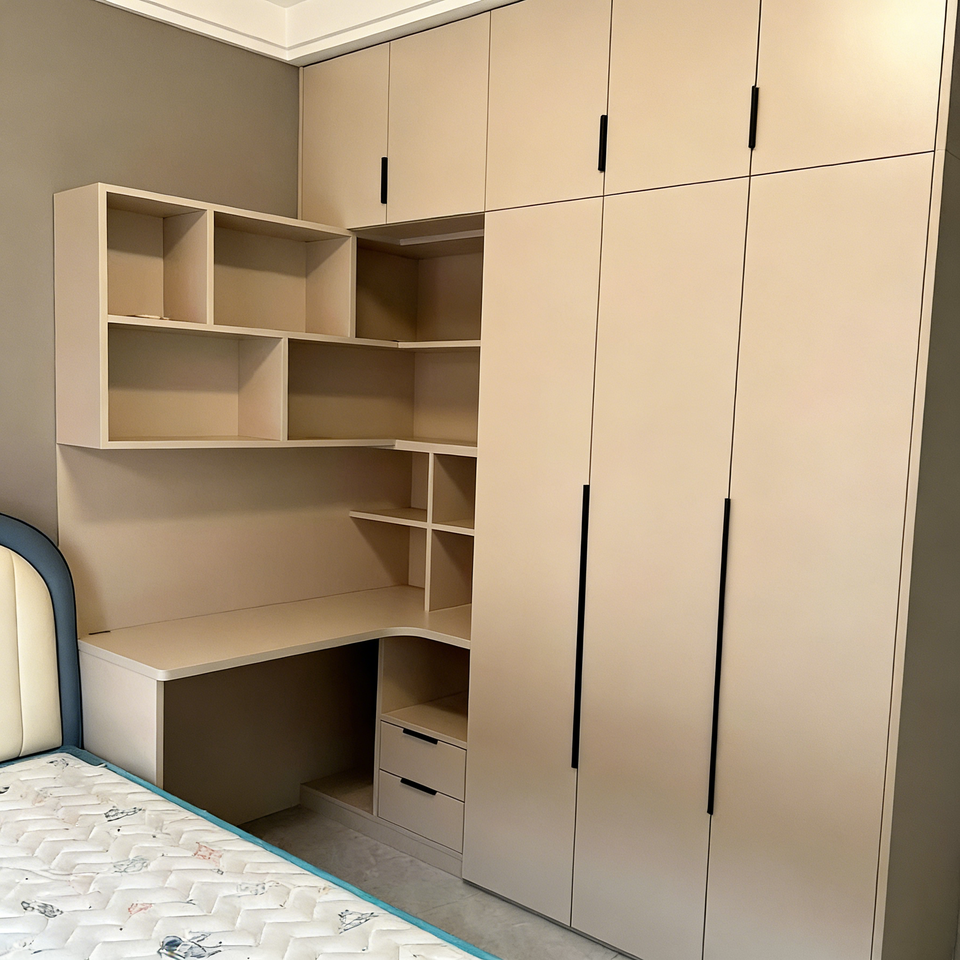 ตู้เสื้อผ้าไม้จริงแบบโมเดิร์นสั่งทำพิเศษ BALOM พร้อมโต๊ะทำงานและชั้นวางของ, เฟอร์นิเจอร์ห้องนอน, รับออกแบบขนาดตามต้องการ