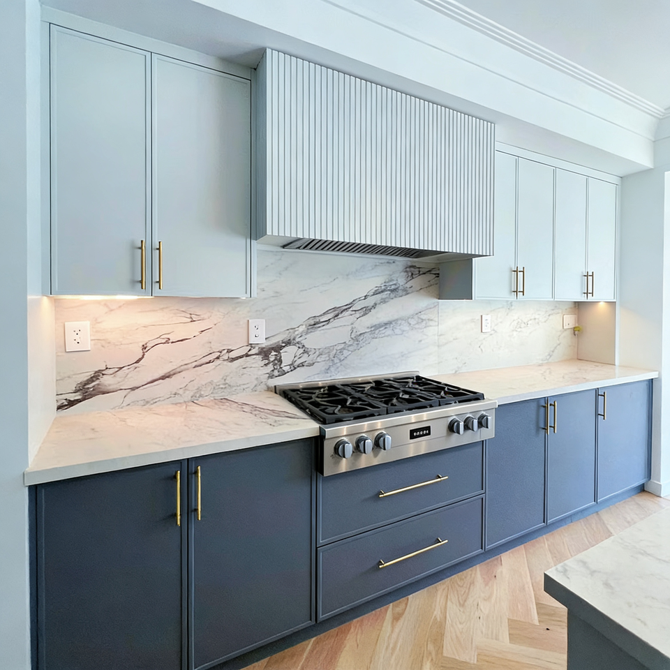 ตู้ครัวไม้จริงสองสีทันสมัยแบบกำหนดเองของ BALOM, ตู้เก็บของกันน้ำ, ชุดตู้ฐานและตู้ติดผนัง