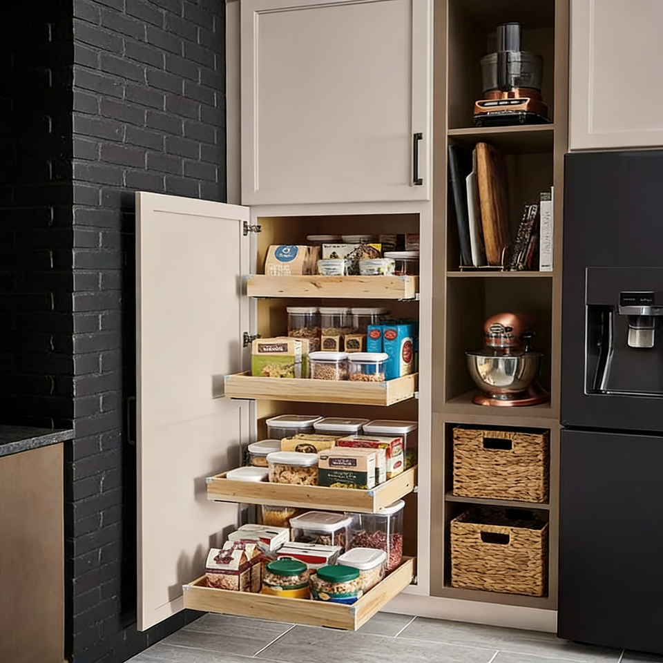 ทำด้วยไม้, เป็นมิตรกับสิ่งแวดล้อม, ทนไฟ, ครัวสมัยใหม่, ตู้ครัวแบบแยกส่วน