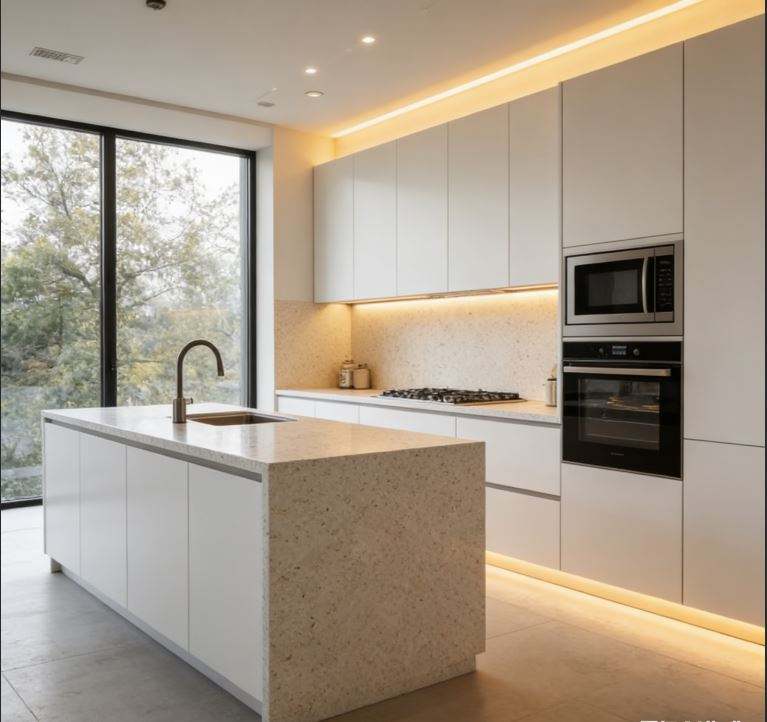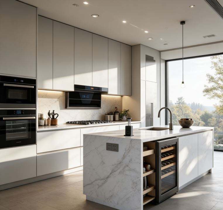 ทำด้วยไม้, เป็นมิตรกับสิ่งแวดล้อม, ทนไฟ, ครัวสมัยใหม่, ตู้ครัวแบบแยกส่วน