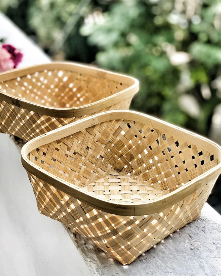 ตะกร้าไม้ไผ่สานเป็นมิตรต่อสิ่งแวดล้อมทนทานและนำกลับมาใช้ใหม่ได้