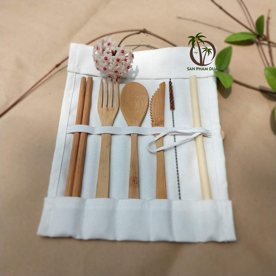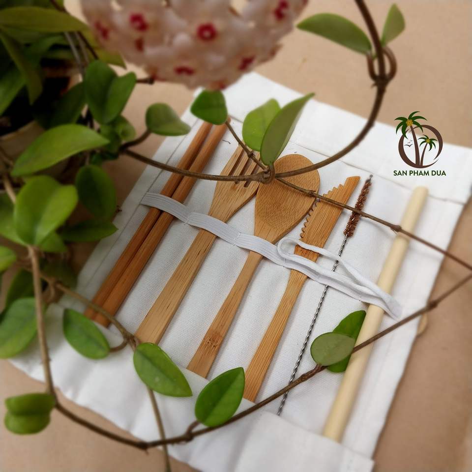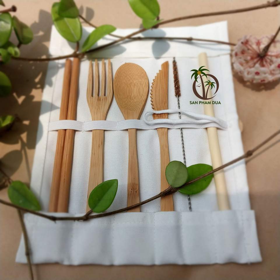 ชุดช้อนส้อมไม้ไผ่แบบมีหลอดทำจากไม้ไผ่ช้อนตะเกียบส้อม/ช้อนไม้ไผ่ผลิตในเวียดนาม