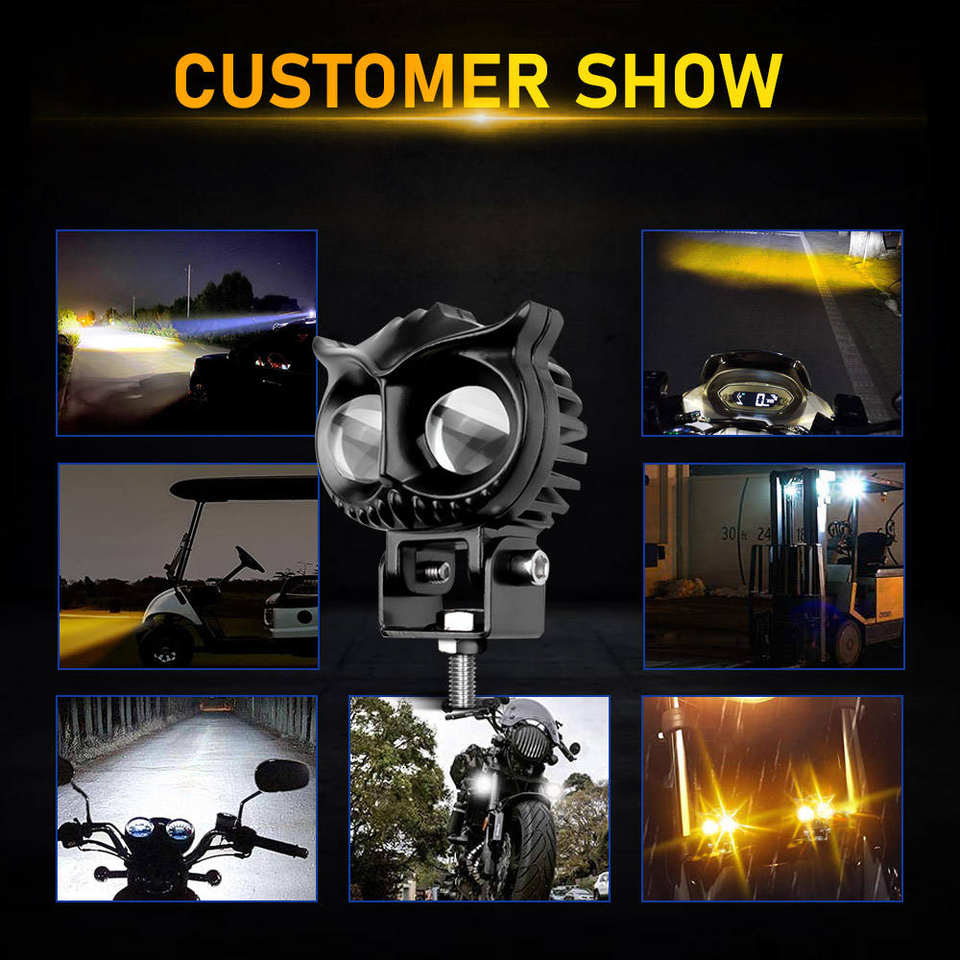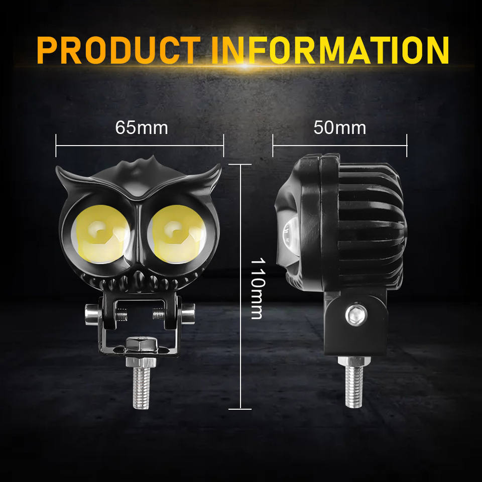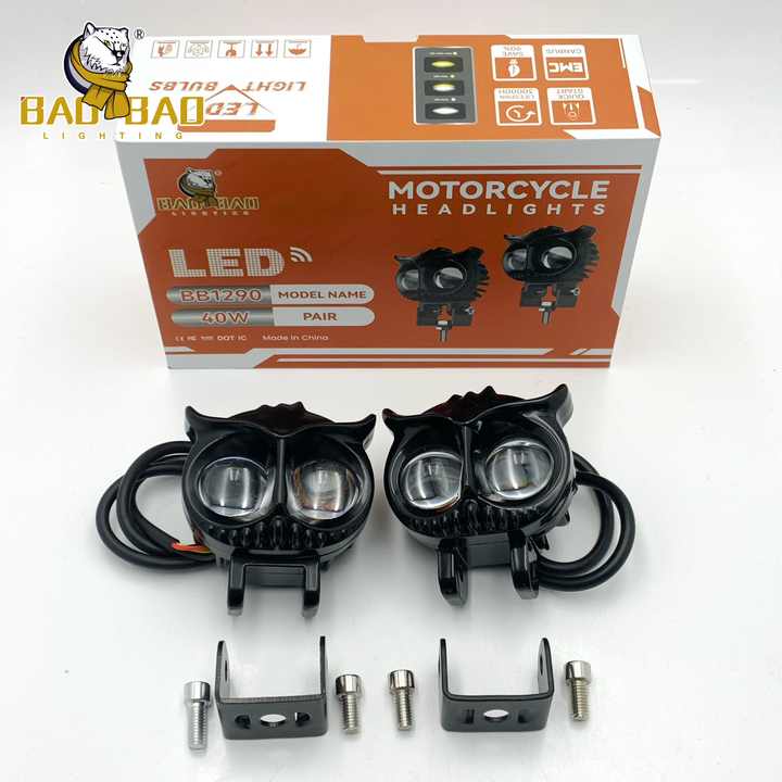 ไฟสปอร์ตไลท์ BAOBAO BB1290 สีขาวเหลืองขนาดเล็ก รูปทรงนกฮูก ไฟเสริม ไฟตัดหมอก ไฟหน้า LED สำหรับมอเตอร์ไซค์ มอเตอร์ไบค์