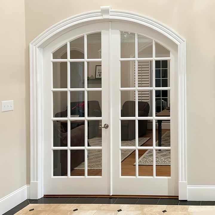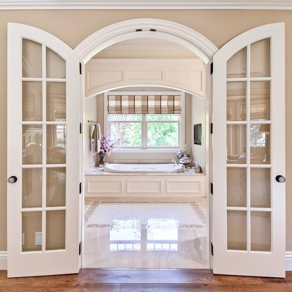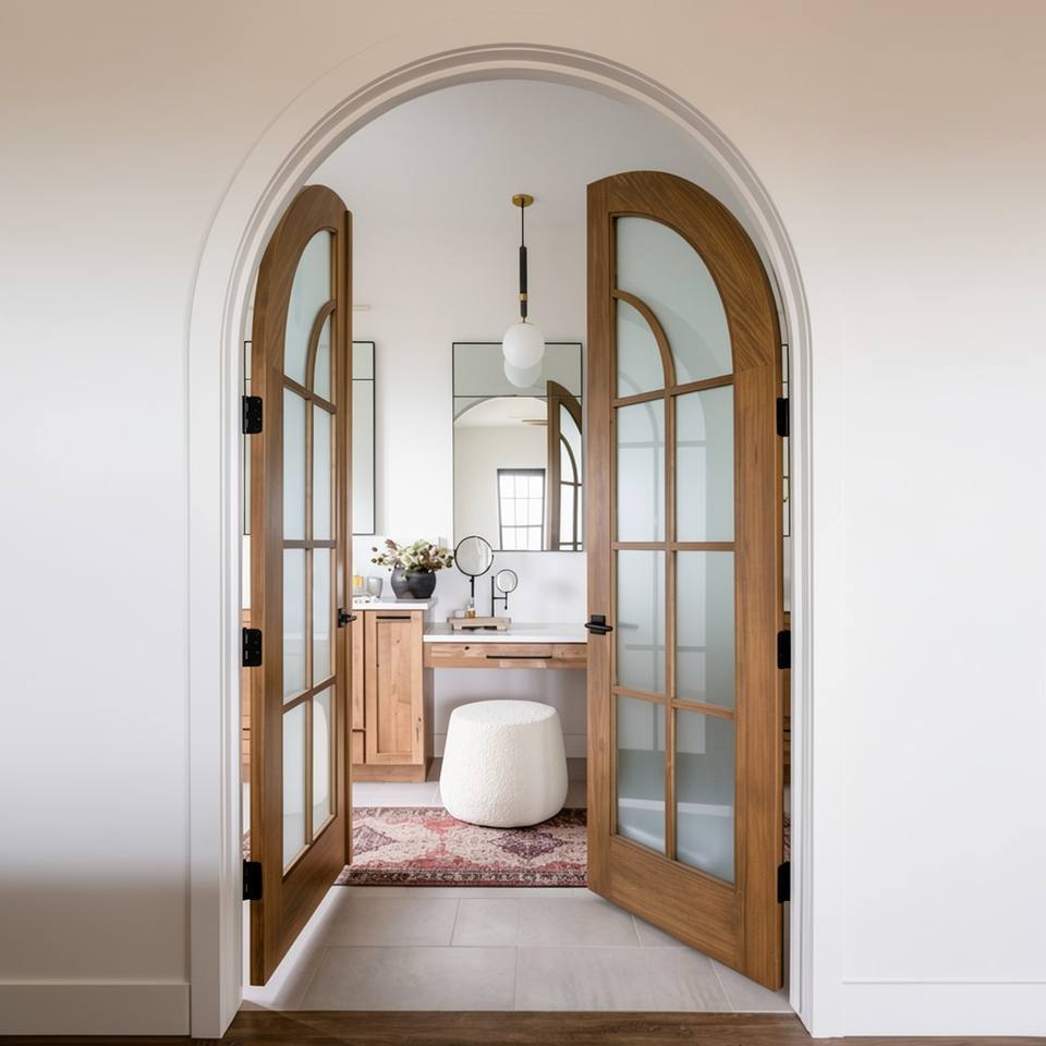 ประตูโค้งสไตล์ฝรั่งเศสแบบสั่งทำ BASEN รุ่นโมเดิร์น พร้อมฉนวนกันเสียง สำหรับห้องนอน ห้องนั่งเล่น อพาร์ตเมนต์ ใช้เป็นประตูไม้ภายในแบบคู่ สีใส