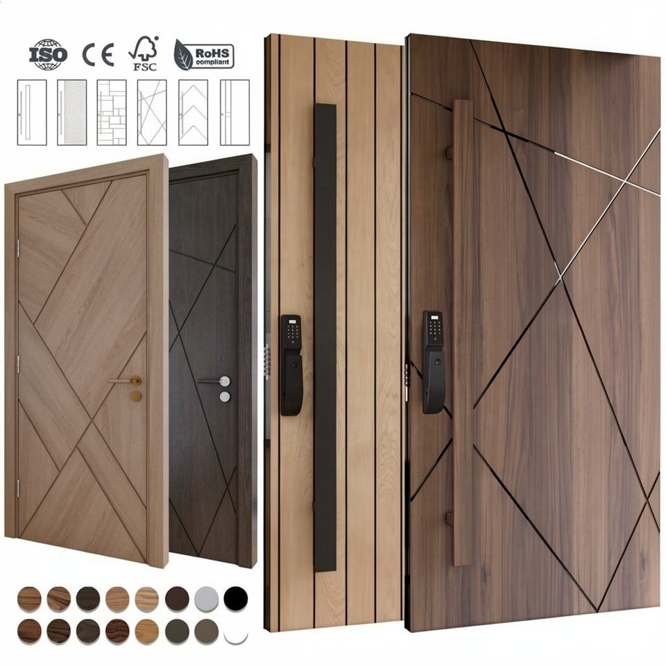 BASEN Solid Wood Custom Entry Luxury Outdoor Door Modern Villa Apartment Hotel Pivot Anti-Theft Exterior Door