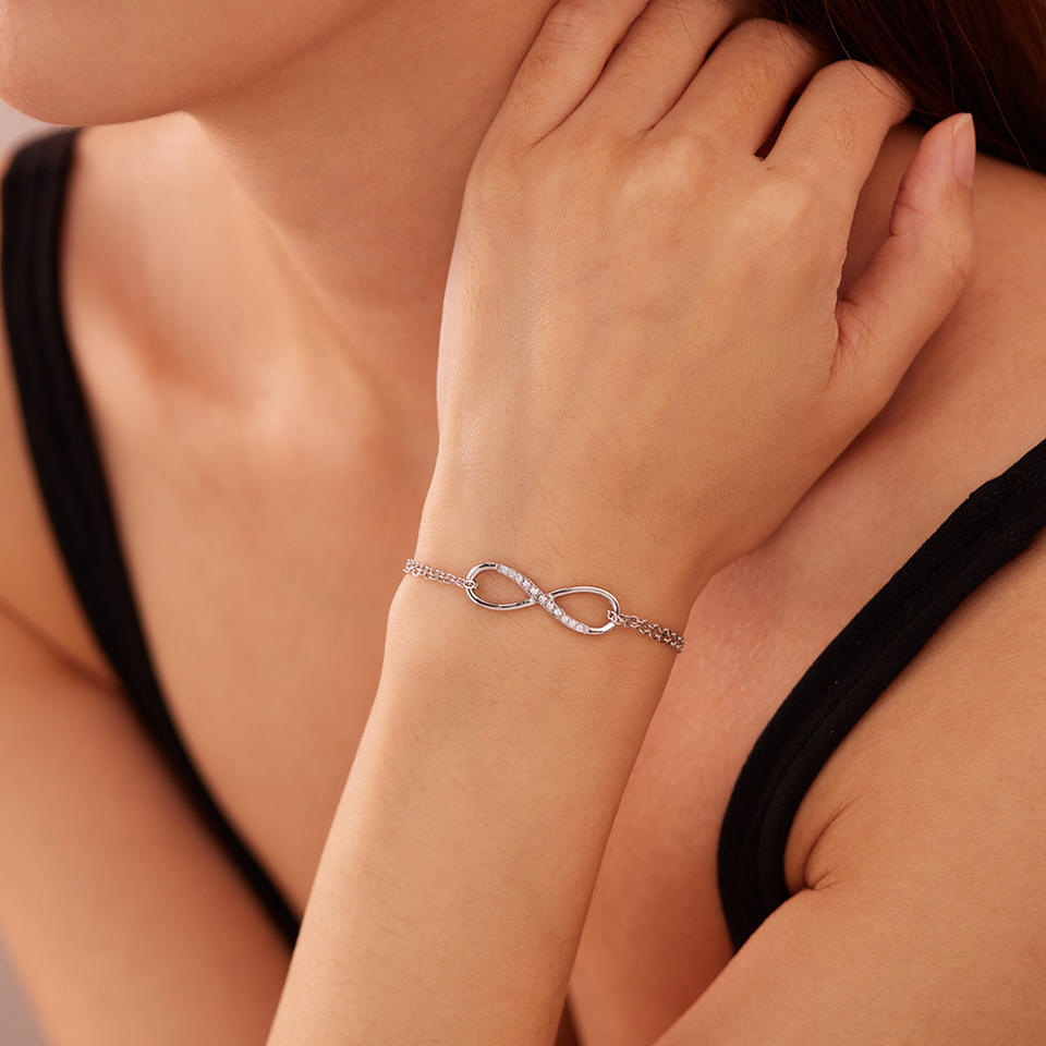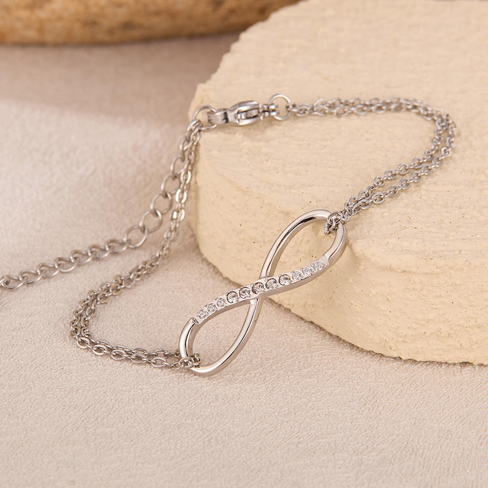 Basquesun สร้อยข้อมือสแตนเลสสตีล8รูปทรงเรียบง่ายใหม่ล่าสุดรุ่นเกาหลีฝังเพทายทันสมัย