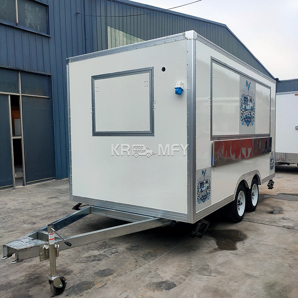 รถขายอาหารเคลื่อนที่แบบรถพ่วงสำหรับขายฮอทดอกบาร์บีคิว โครงสร้างไฟเบอร์กลาส เหมาะสำหรับขายขนมและอาหารริมทาง