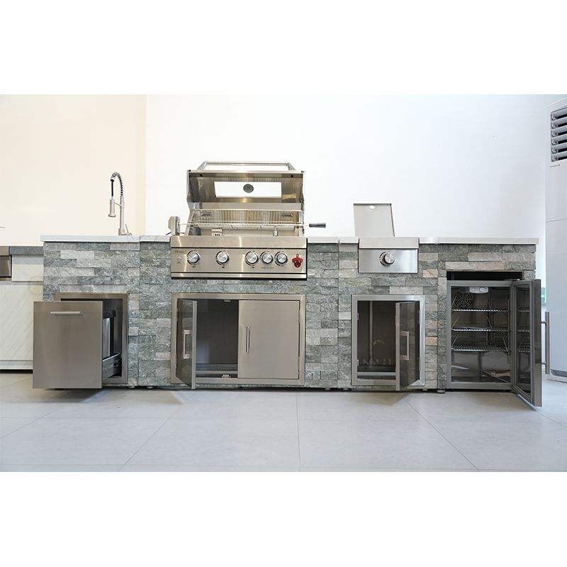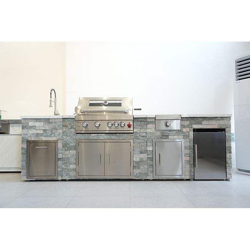 ตู้ครัวกลางแจ้งแบบเกาะพร้อมเตาบาร์บีคิว ตู้เย็น อ่างล้างจาน ก๊อกน้ำ ดีไซน์ทันสมัยสำหรับบ้านและสวน ผลิตจากสแตนเลส 304