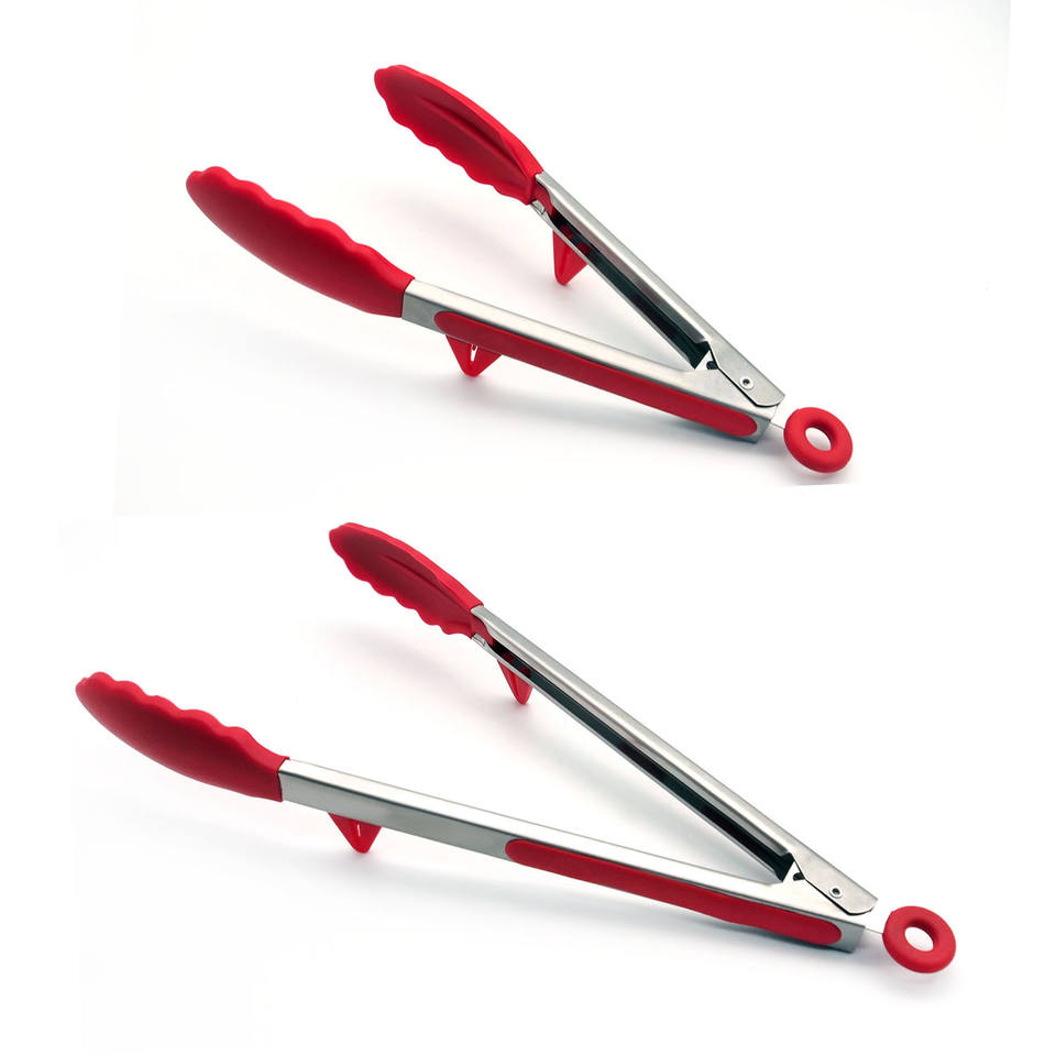 ที่คีบอาหารสแตนเลสซิลิโคนแบบสองชิ้นพร้อมแผ่นรอง - ที่คีบย่าง, ที่คีบเนื้อ และอุปกรณ์ย่าง