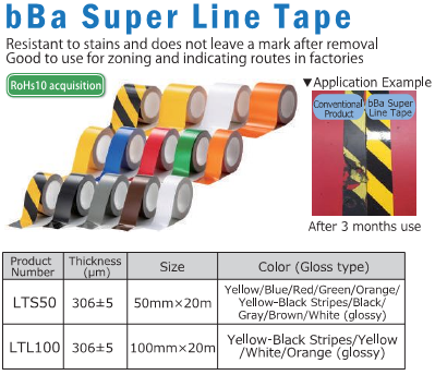เทปมาร์คพื้น BBa Super Line ทนทาน แข็งแรง สำหรับความปลอดภัยและการป้องกัน ผลิตในญี่ปุ่น 6 ม้วนขึ้นไป